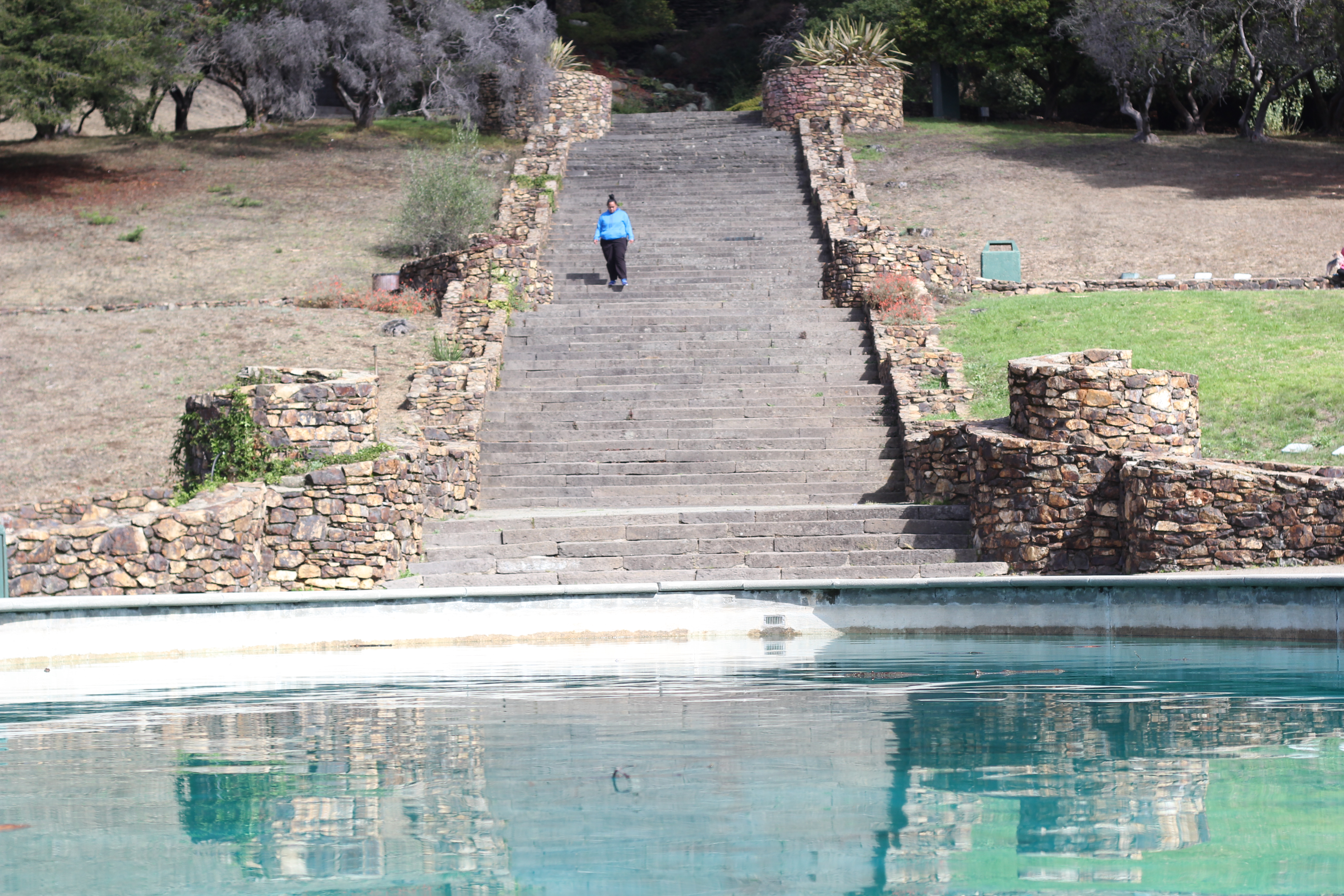 Up the hill, towards the park’s waterfall, the lack of water flowing is glaringly apparent. The dead, brown grass that surrounds the waterfall is yet another example of California’s drought woes. The plants and grasses have grown into the cracks in the stairs and surrounding areas, as if they have never been trimmed. It may lead you to believe the park has been unloved or abandoned, but for those that frequent its paths, that’s just how they like it.