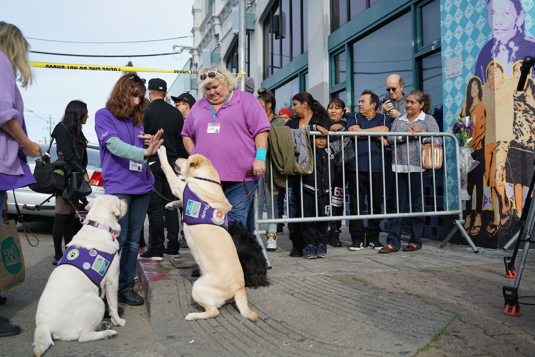 - Volunteers from the Valley Humane Society brought therapy dogs to comfort onlookers. Photo by Margaret Katcher.