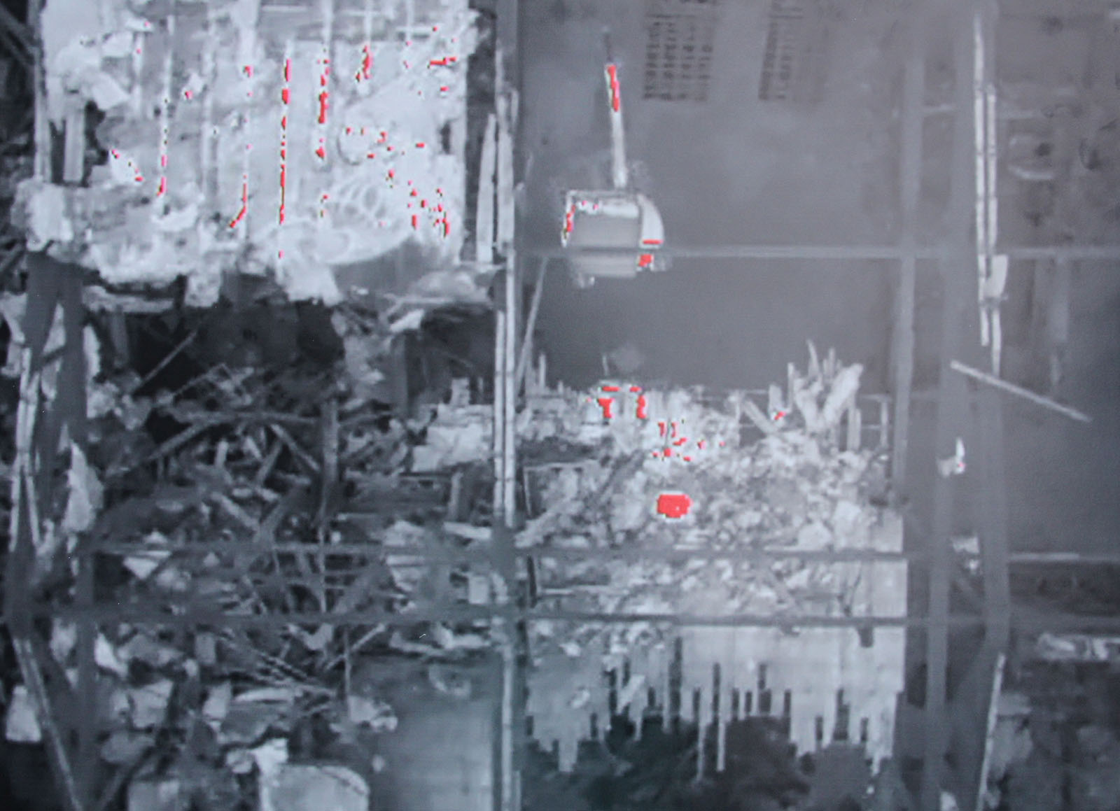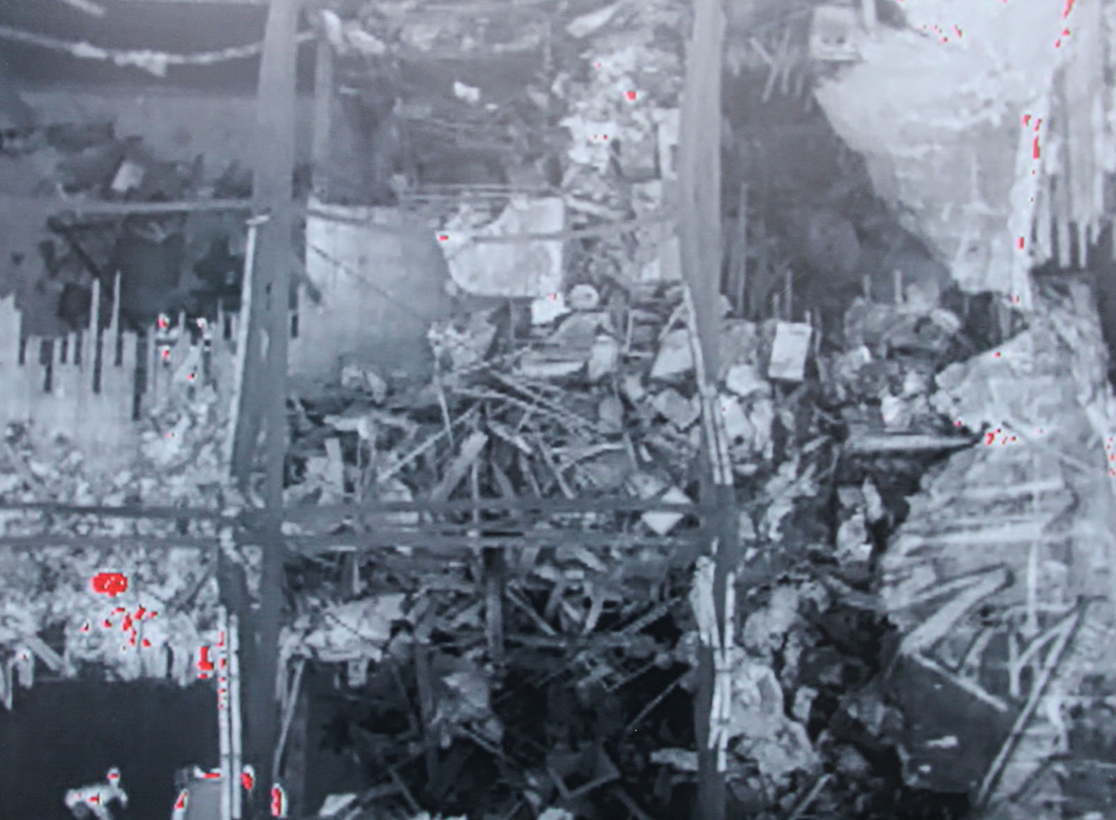 - Thermal imaging showing current hot spots on the warehouse site. Original image courtesy of the Oakland Police Department.