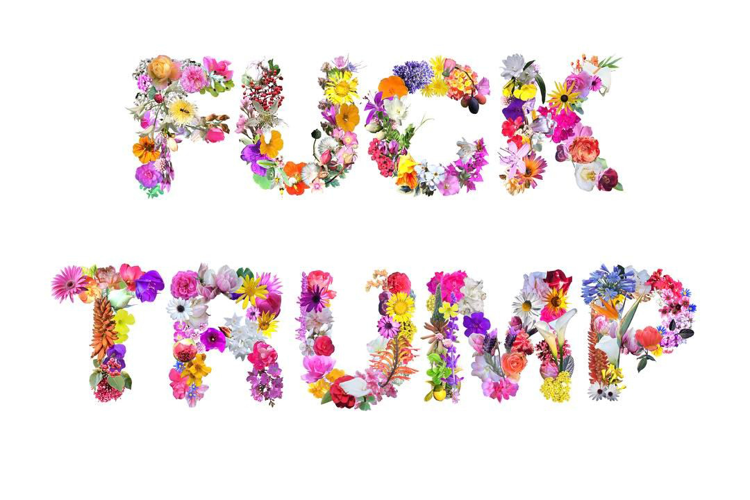 - “Flowers for Mr. Trump” is a work by Jenny Odell, who created her image from photos of flowers found at the Mt. Sutro Open Space Preserve in San Francisco, and in the front yards of Grand Lake, Oakland. An homage to the Flower Power of the 1960s, it is also an attempt to render beautiful a message to a man who is, by all accounts, extremely concerned with beauty. (Photo Courtesy 100 days of Action)