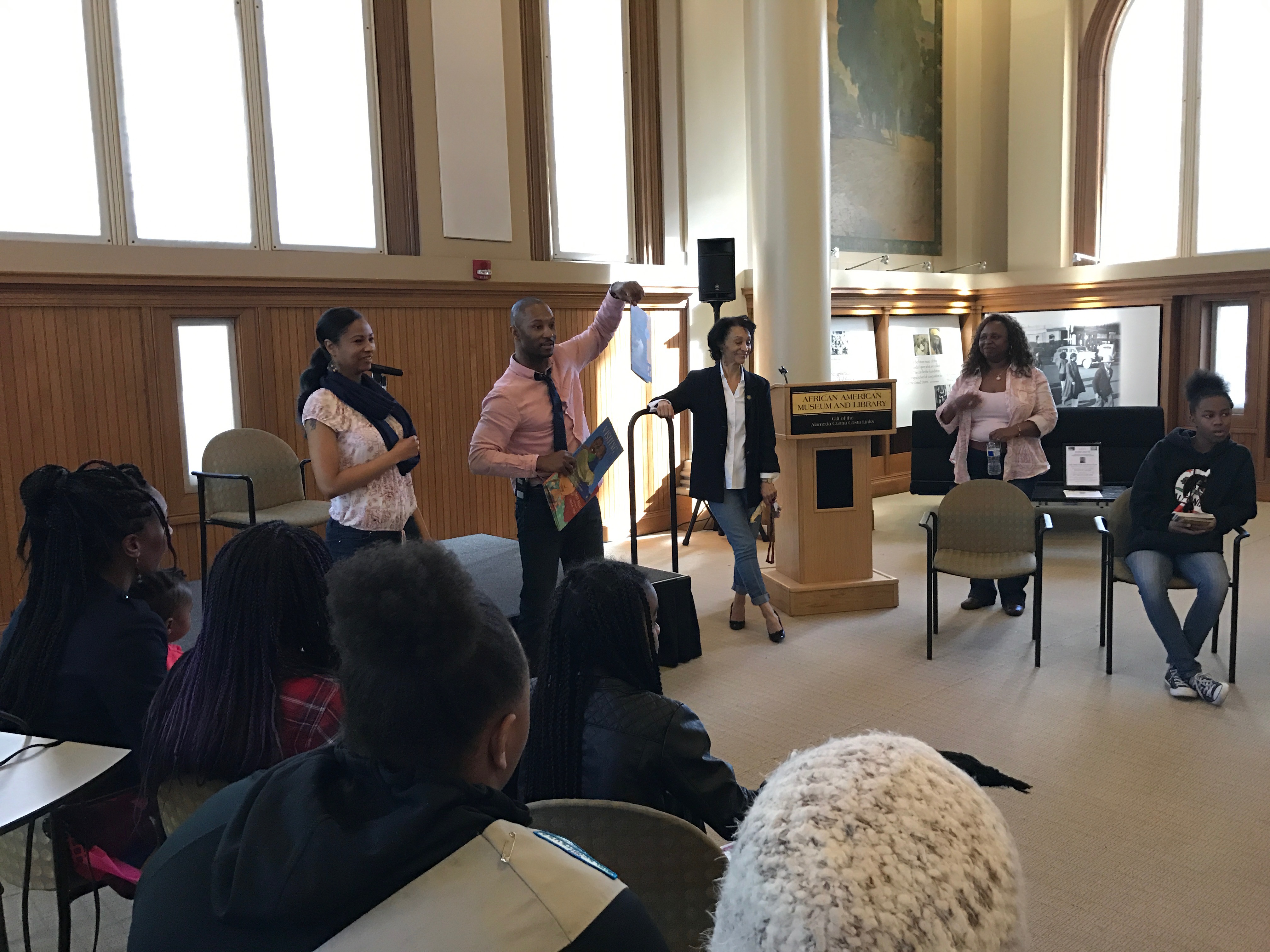 So far, BBB staffers have passed out more than 300 books to children in Oakland at over 15 barbershops and at community centers and festivals, but this was the first event they’ve held at the library. Devin Weaver, BBB’s organizational strategist, met with Veda Silva, AAMLO’s project director, a few months ago after the two realized their missions aligned. “AAMLO’s mission is to promote community through historical literature and our mission is promote through contemporary literature,” said Weaver, who says there were kids all over the place during his first visit to the library.