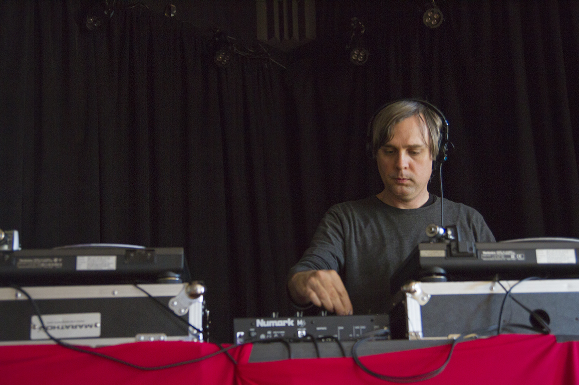 - DJ Bobby Ganush of International Freakout A-GoGo spins records at the art sale. Photo by Abner Hauge
