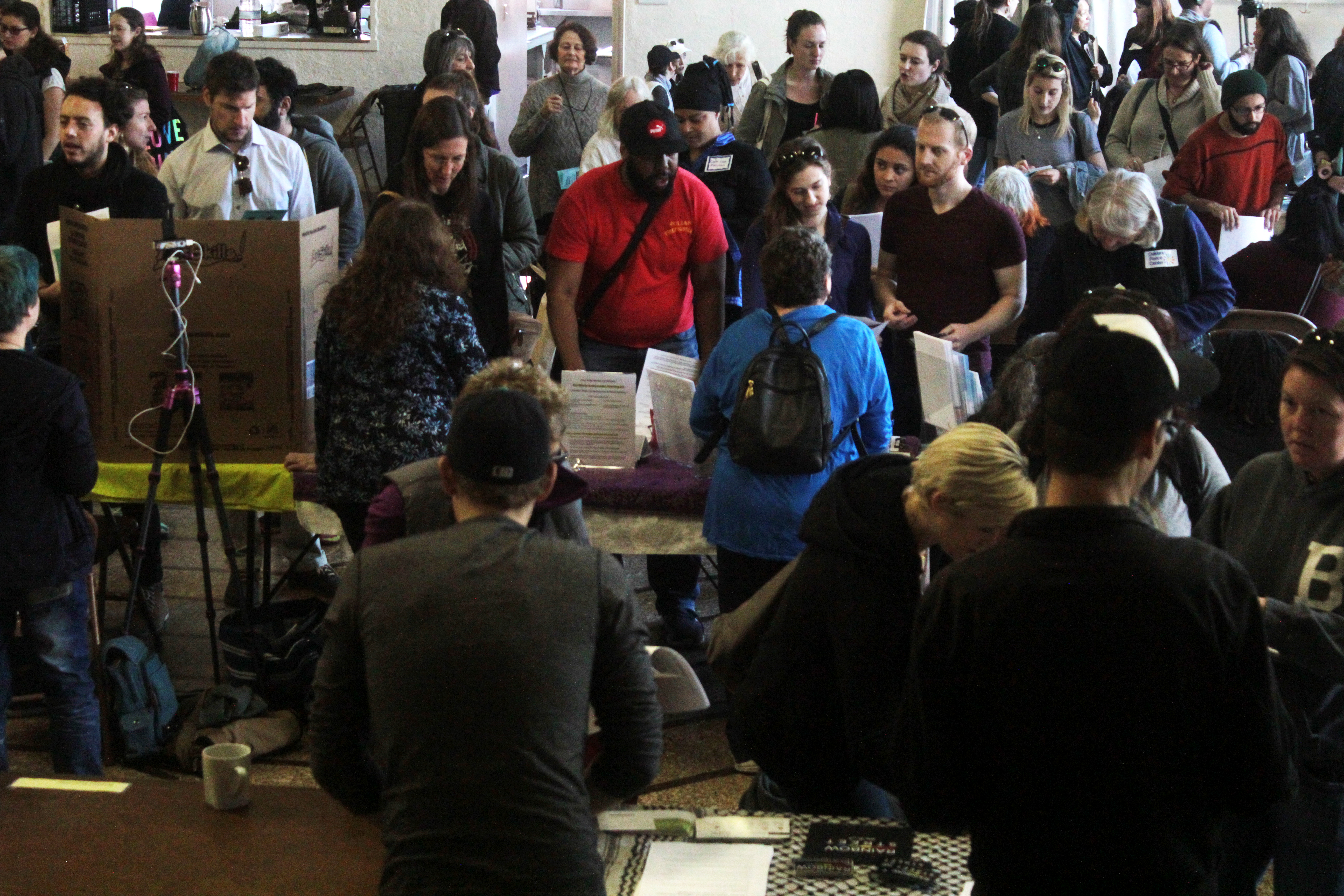 Teara Stoop and her two young children were playing in the corner of the main tabling room, while the buzzing crowd moved from table to table collecting colorful flyers. “I wanted to check out what’s going on, what activism there is in the area,” Stoop said.