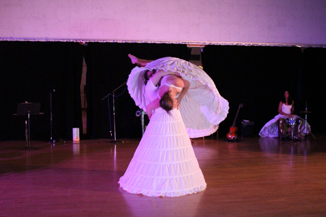 Dancing, singing and prose reading followed the playing of drums, guitar, accordion, and other instruments. The Bandelion performers danced in groups, in pairs and solo, like ballerinas in white ball gowns doing lifts and pirouettes.