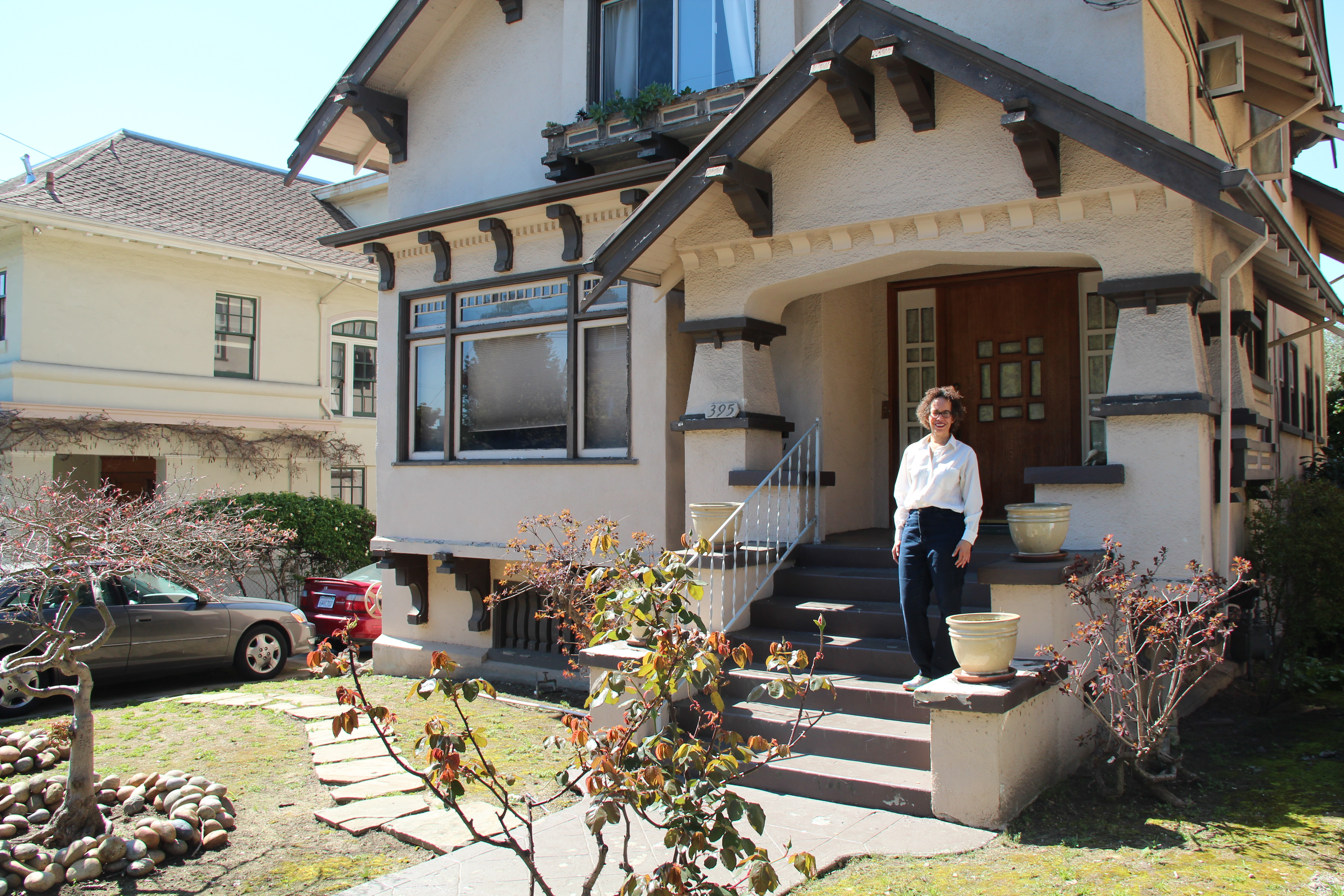 - Cynthia Mackey stands outside her home on Bellvue Avenue near Lake Merritt. (Ryan Lindsay/Oakland North)