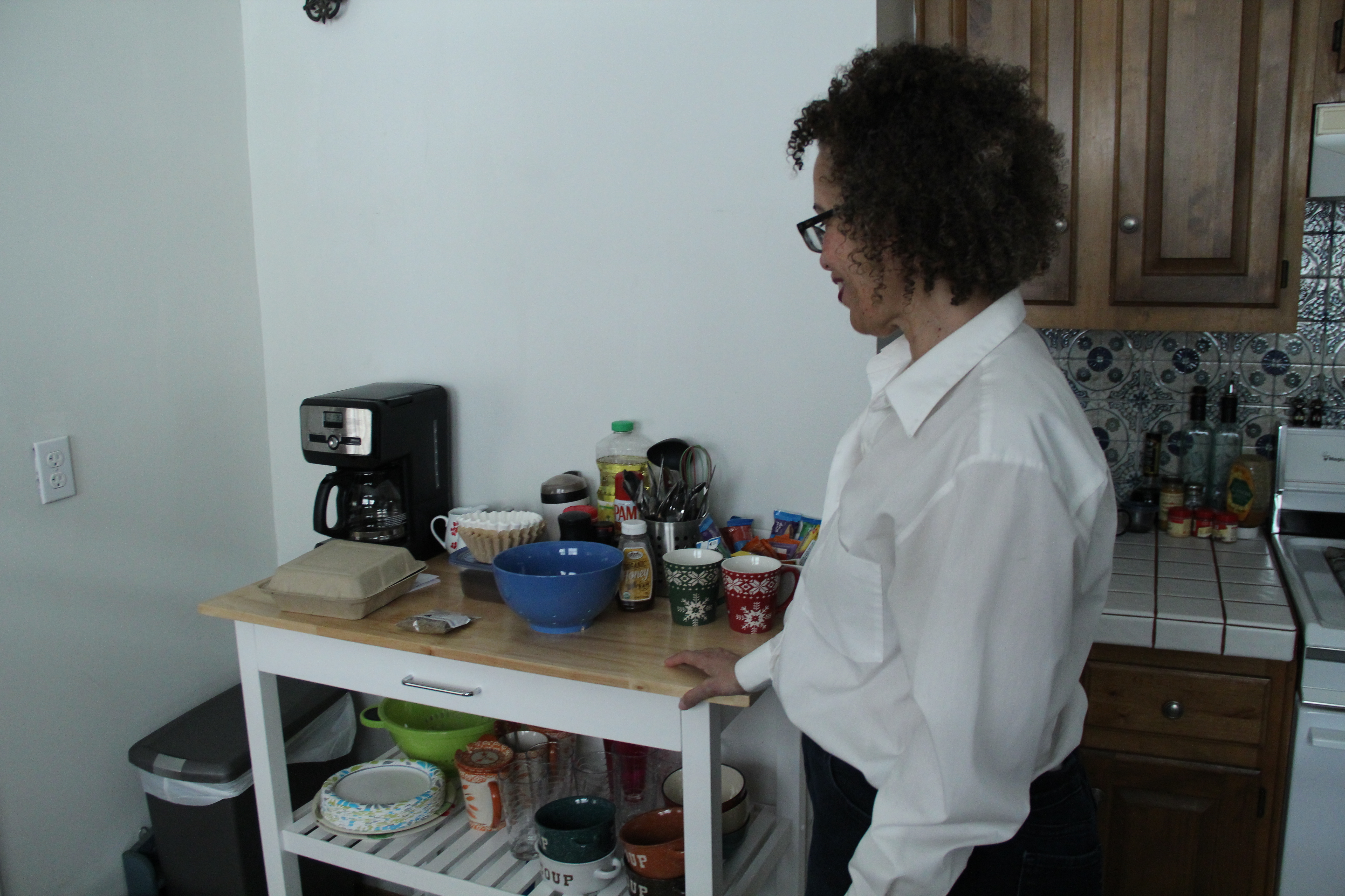 - Mackey says that she created this a complimentary grab & go bar with coffee, snacks and dishes for meals if guests decide to cook. (Ryan Lindsay/Oakland North)
