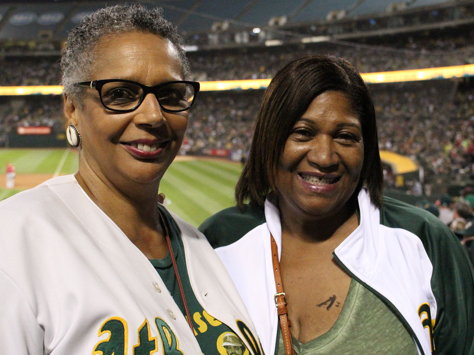 “Everything we learned about stealing, we learned from Rickey Henderson,” said Laura Skaggs, who sat next to her best friend Barbara Lipnosky for their 43rd consecutive opening day game. Lipnosky, who played softball in high school, remembers seeing Henderson play when her alma mater, Skyline High School, would play against Oakland Tech, who later named their field after Henderson. “We knew that he was something special, even way back then,” said Lipnosky.