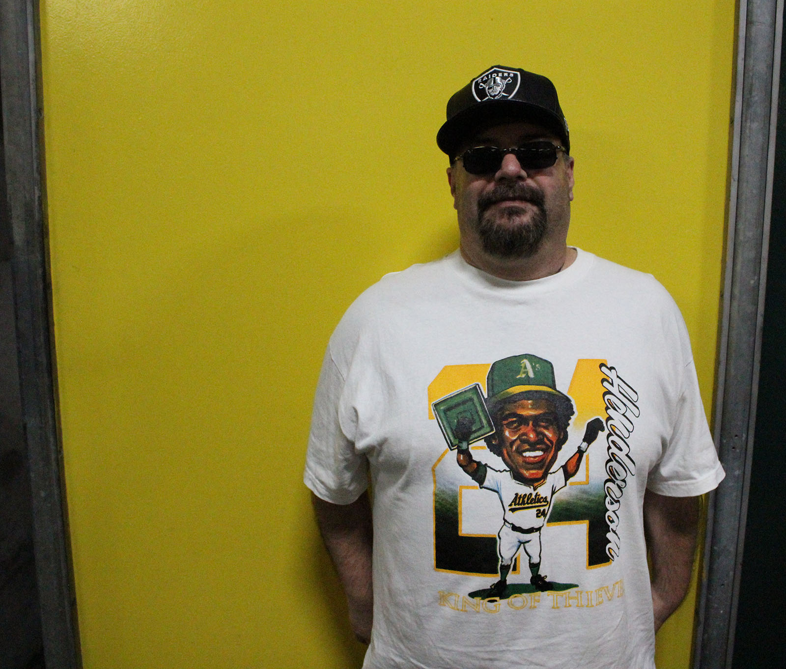 A’s fan Al Franco stood near a concession stand wearing a white t-shirt with a cartoon illustration of Henderson, hands raised in the air holding a base, with the words “KING OF THIEVES” at the bottom and the number 24 as the backdrop. Franco remembers going to see Henderson play in 1980, when he was about nine years old. “I just saw his speed and his raw athleticism and I knew he was going to be great,” said Franco. “It’s about time they do something for him.”
