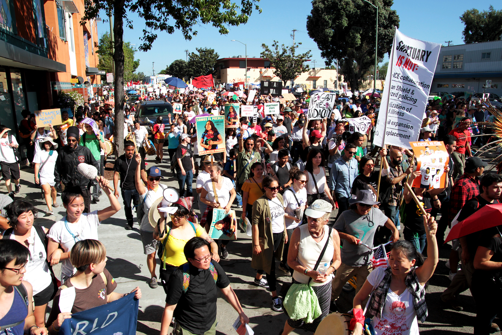 The march, organized by Oakland Sin Fronteras, a group that organizes public events on social justice issues, was endorsed by over 60 local nonprofits, unions and activist organizations including Service Employees International Union (SEIU) Local 2015, indigenous rights group Idle No More SF Bay and the Anti-Police Terror Project.