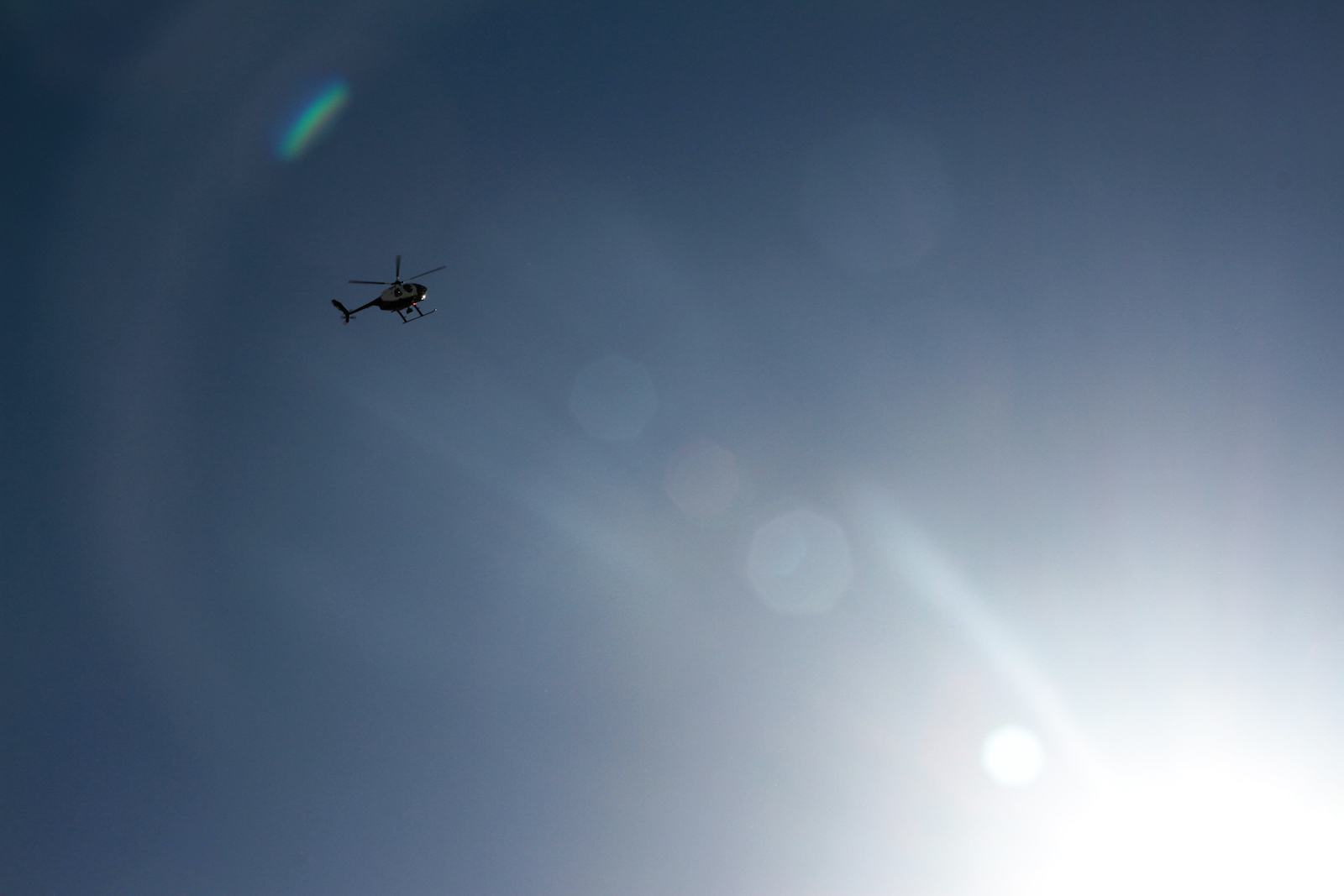 - Police helicopters circled over the peaceful march, but no arrests were made. Photo by Andrew Beale.