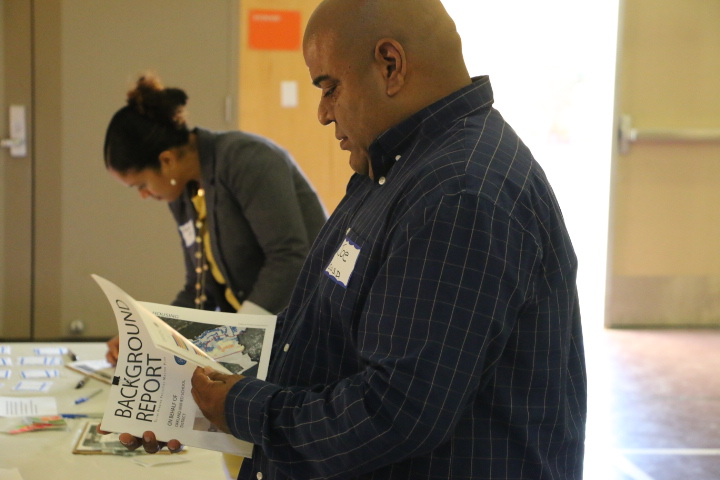 - Joe Dominguez, deputy chief of facilities, reads over the background report for OUSD’s Blueprint project.