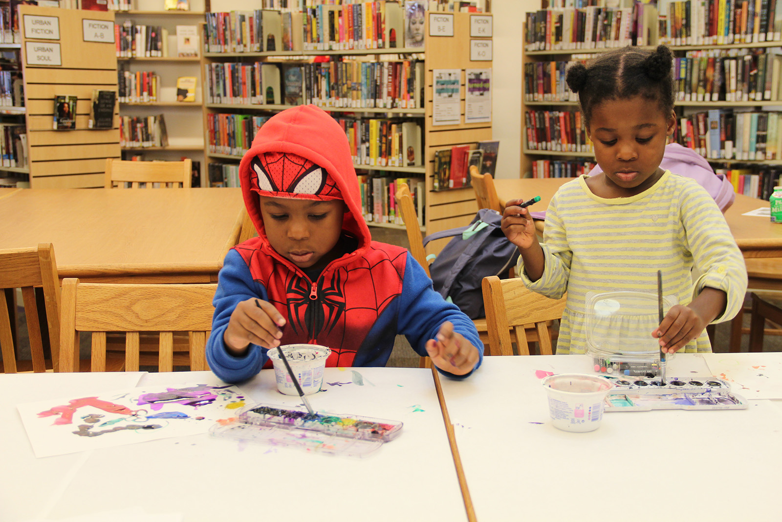 - Siblings Pharaoh and Egypt paint with watercolors at MLK Jr. Branch Public Library in Oakland.