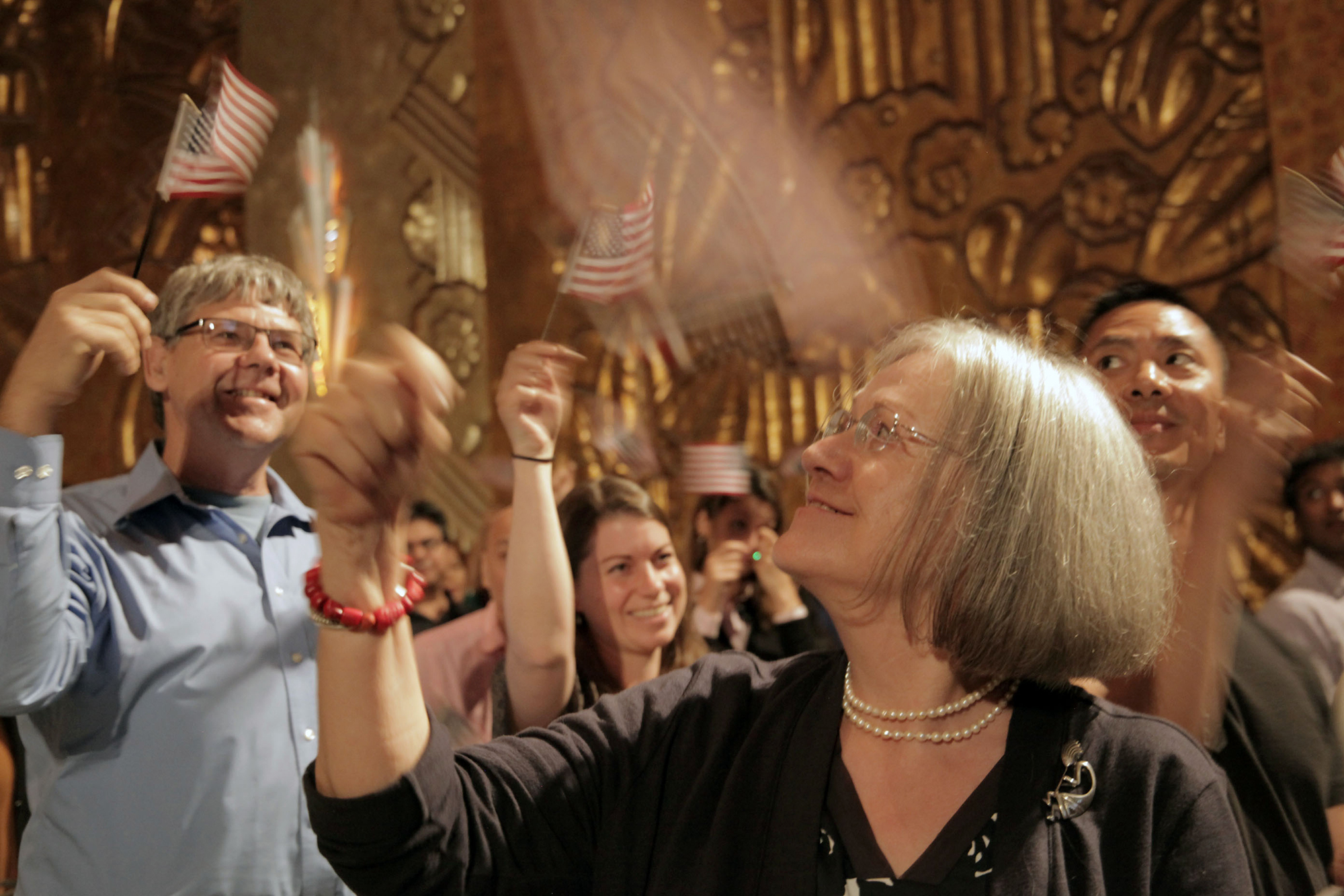 Inside the jam-packed Art Deco auditorium, Randy Ricks, a Richmond-based senior officer for USCIS, began the ceremony by delivering remarks in Hindi, Spanish and Cantonese, reflecting the diversity of his audience. “This is not like a courtroom,” he explained. “Please feel free to cheer and yell.”
