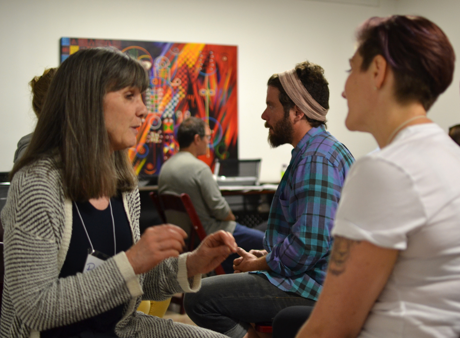 In a small art-filled conference room at Oakstop, a coworking and event space in uptown Oakland, 14 strangers circled the room, bumping into each other and smiling nervously, unsure about what would happen next.