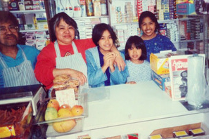 - The Castro family: Baltazar, Adelaida, Leilani, Nina, and Marie (L-R), at Oriental Lucky Mart, summer 1993.