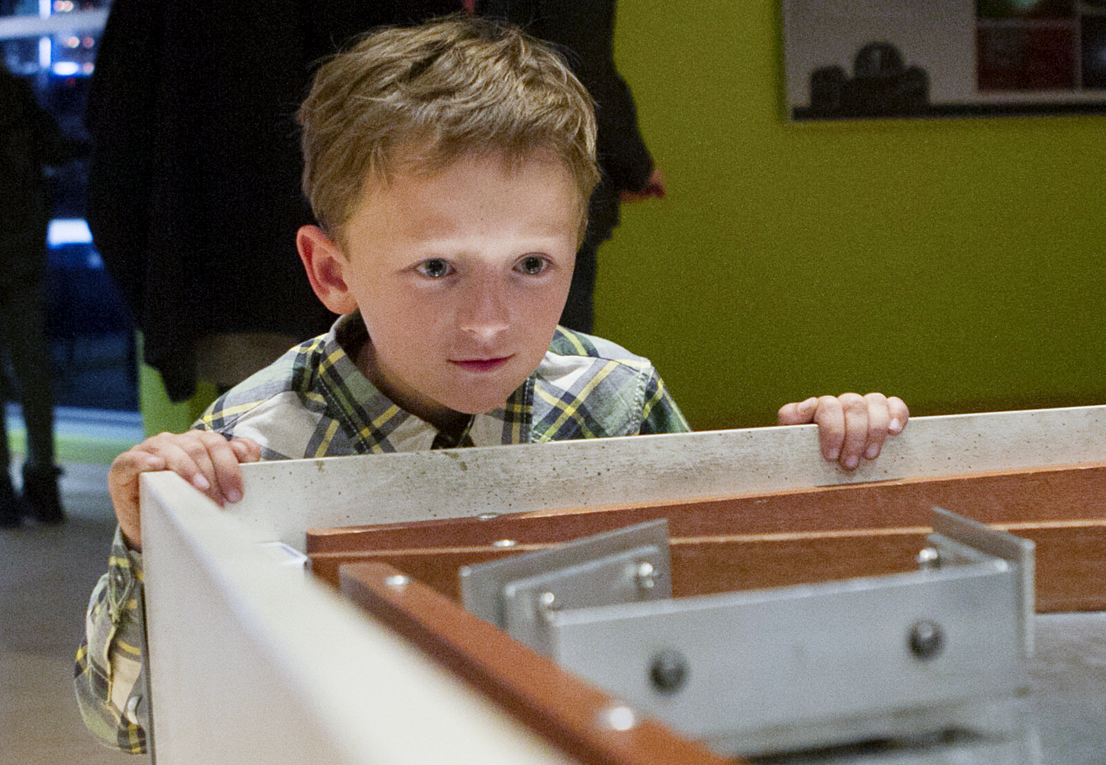 - Jackie Leidy, 7, watches his pinball at the create-your-own pinball station at the Chabot Space and Science Center.