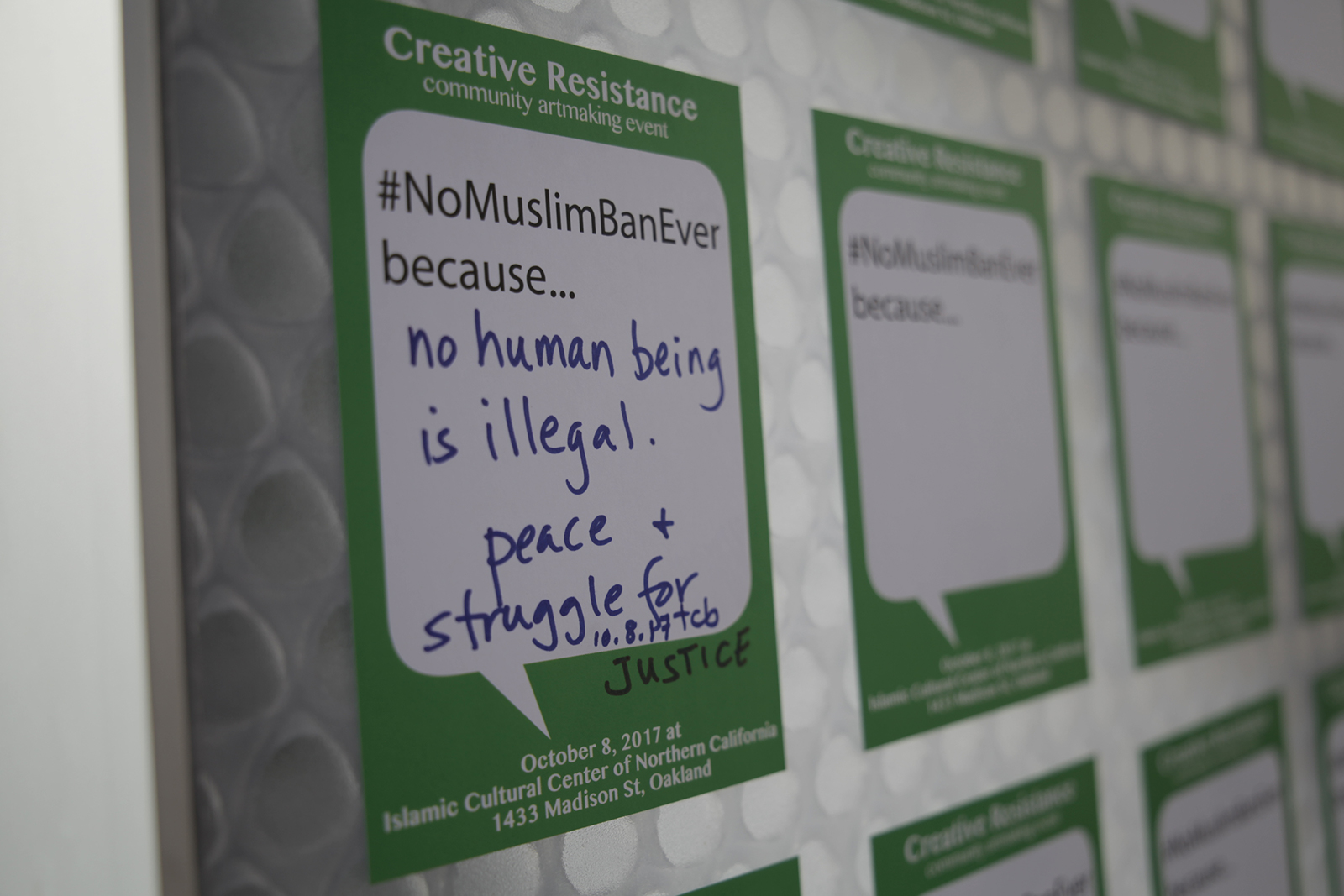 Sunday’s art-making event was held in conjunction with the Band Together Vigil held on October 9 in San Francisco, as well as No Muslim Ban Ever, a national campaign that is organizing a march in Washington D.C. on October 18.