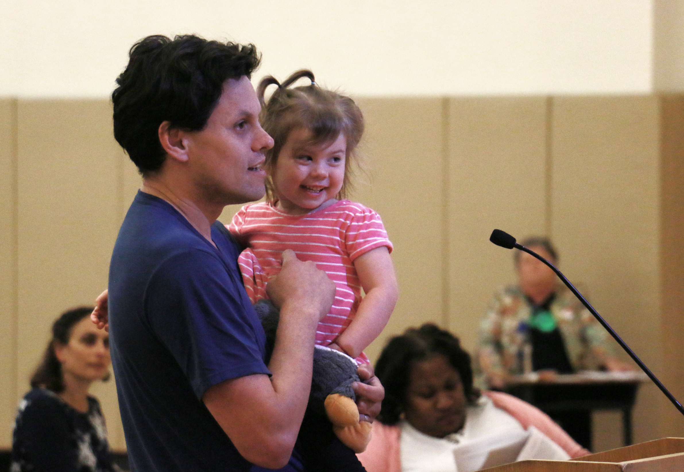 - A father tells the school board that he wants Glenview Elementary School to reopen so that his daughter, seen here, can go to school in her neighborhood. Photo by Hyowon Lihinag-Tam.