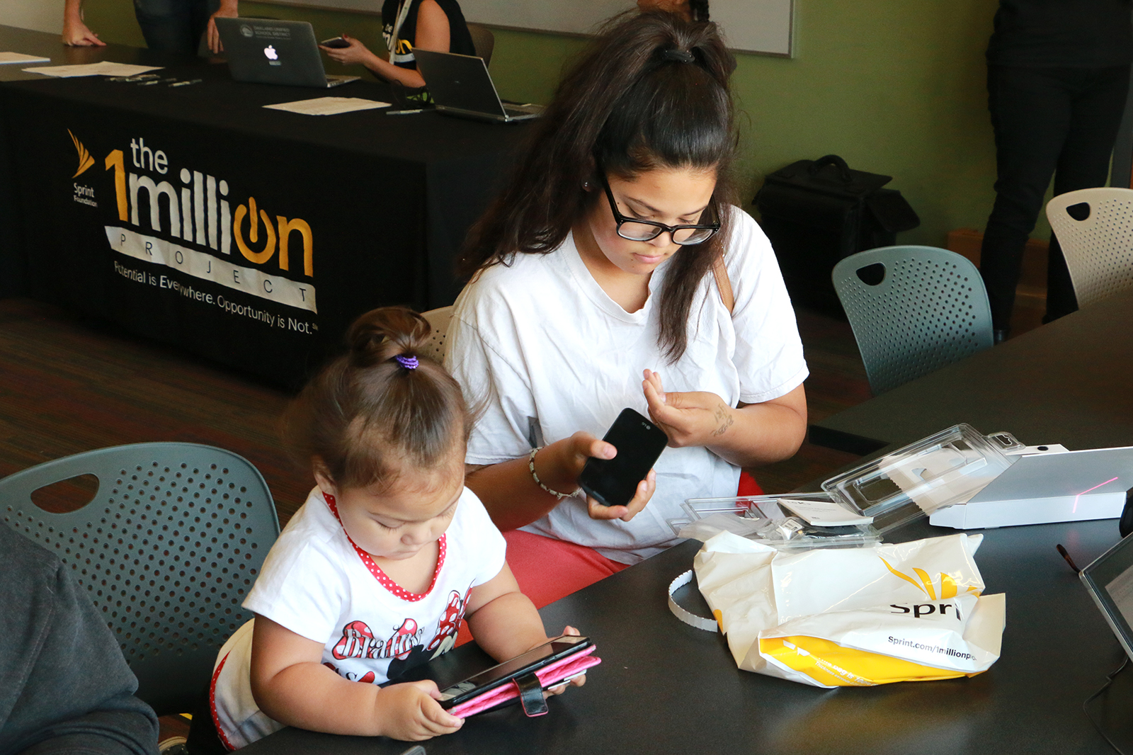 Sprint provided 100 smartphones to give out at the event, which lasted from noon to 2:30 p.m. But only 10 devices were distributed to students, because only about 10 families showed up to take advantage of the opportunity.