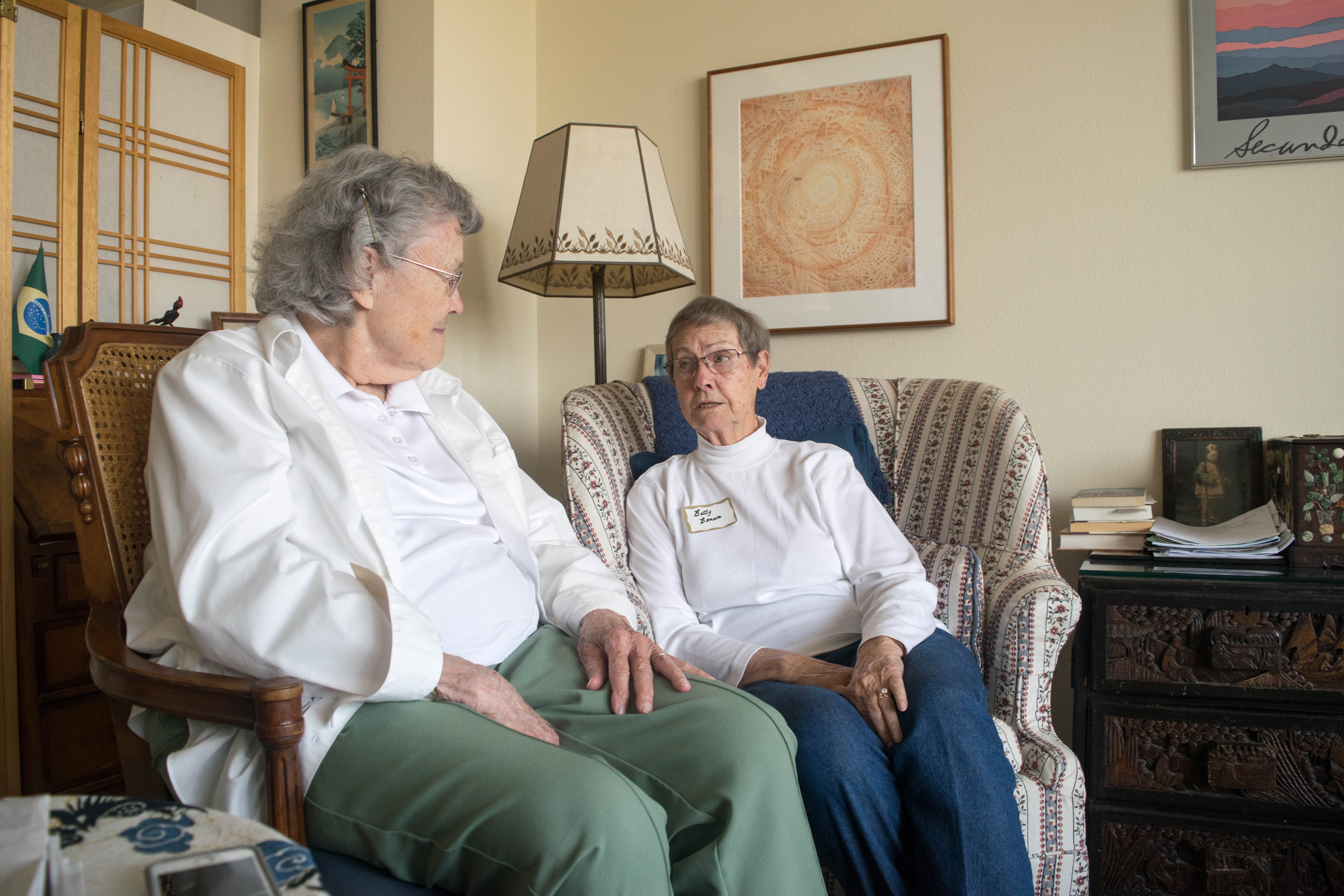 - Mary Anna Colwell sits in her Oakland apartment with Barbara Benson, a resident of Sonoma County who had been evacuated from the wildfires and placed in Colwell’s home.
