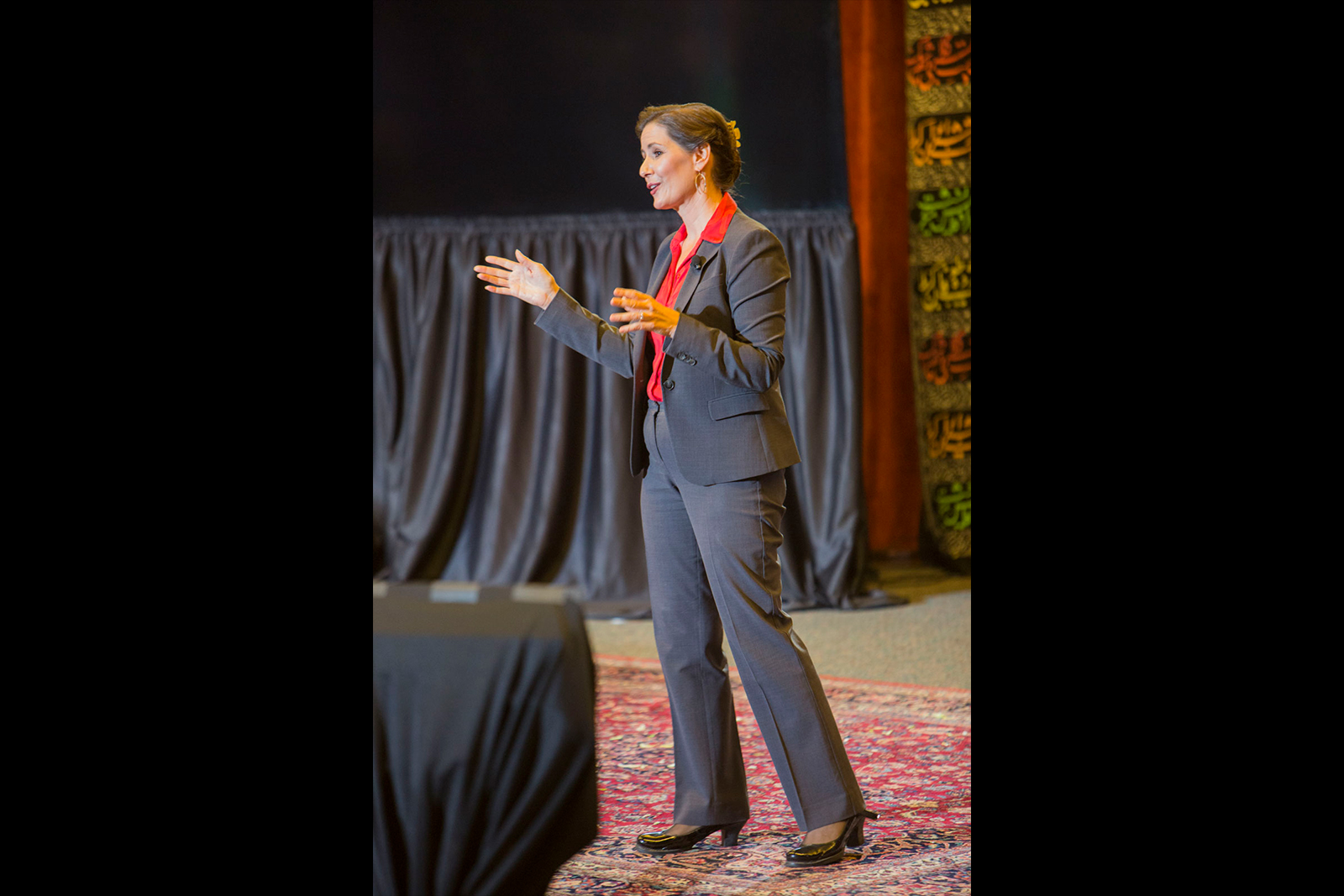 At about 6 pm, inside the main hall—where the outside chants of “What do we do? Stand up! Fight back!” were reduced to a quiet muffle—the center’s board president Dr. Payman Amiri told the audience it was his “greatest honor” to host the mayor’s annual speech. “I realize how hard it is to be a servant of a community,” he said to the audience.