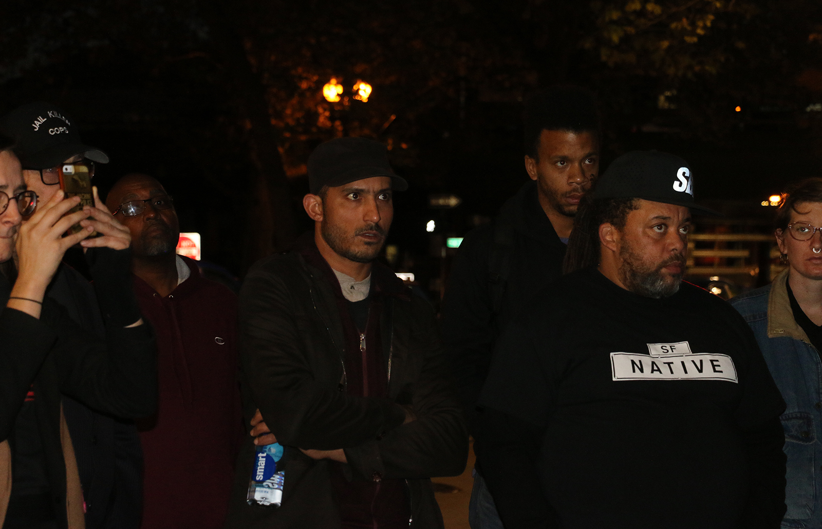 Cat Brooks, another co-founder, took to the mic of their mobile PA system. “Tasers kill,” she said. Brooks went on to say that this case was unusual because they had to “comb through Facebook” to get any details about Toney’s death, and these came from videos posted by people at the scene. Brooks ended by saying that they wanted answers, and that, no matter the weapon used, they would “stand behind the family.”