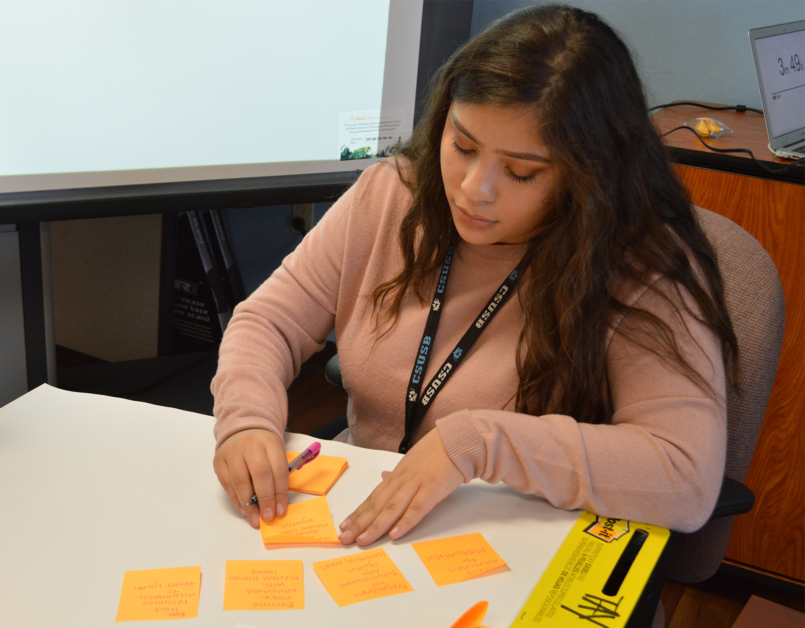 - Ashlee T. Jemmott, PEERS program coordinator, starts the planning of a poster where the group listed their goals as TAY leaders.