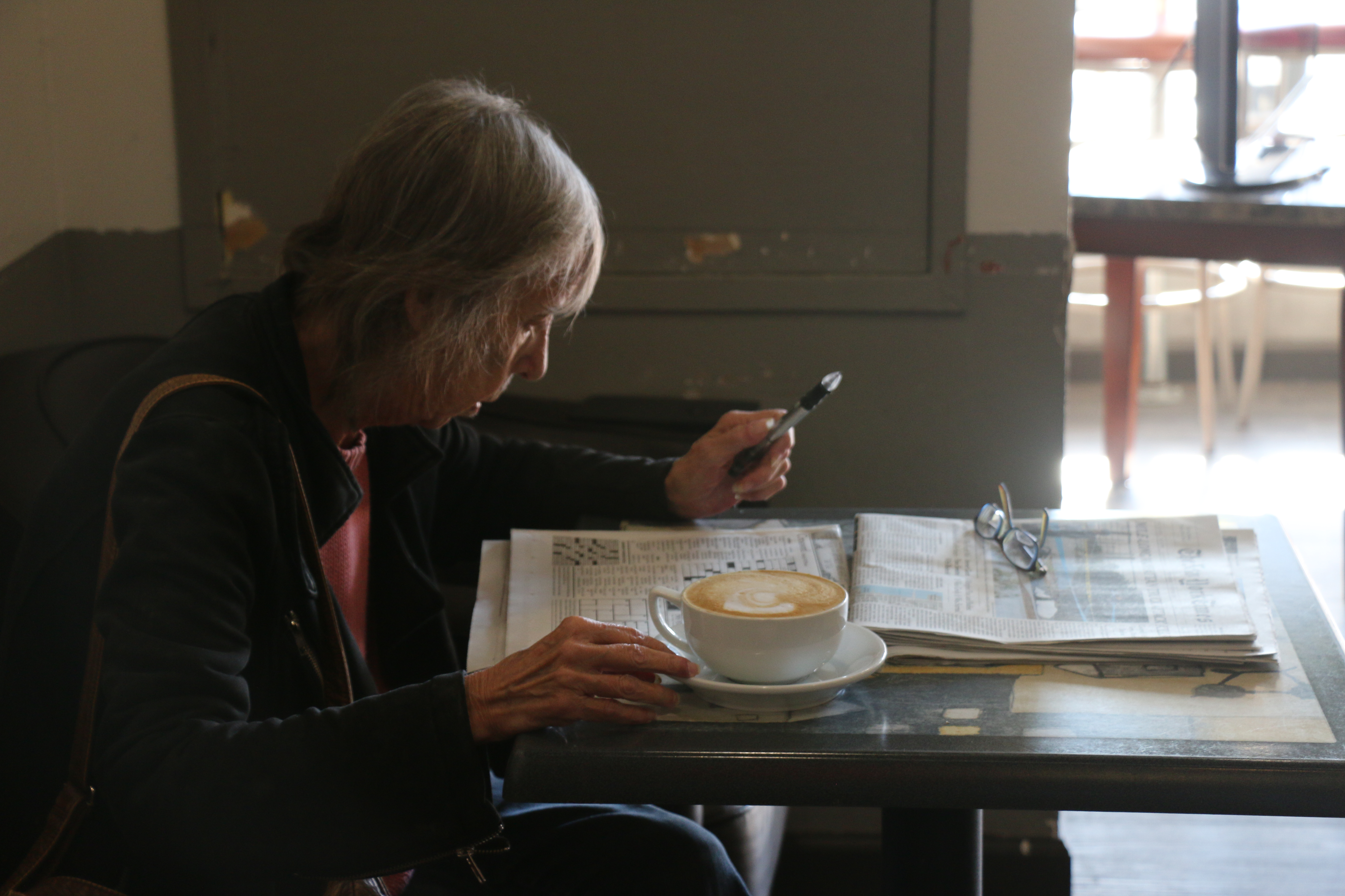 - Bonnie Wilder, retired from an accounting firm, is one of the only customers at Enssaro Café who doesn’t take out a device. She spends more than an hour enjoying her latté and The New York Times.
