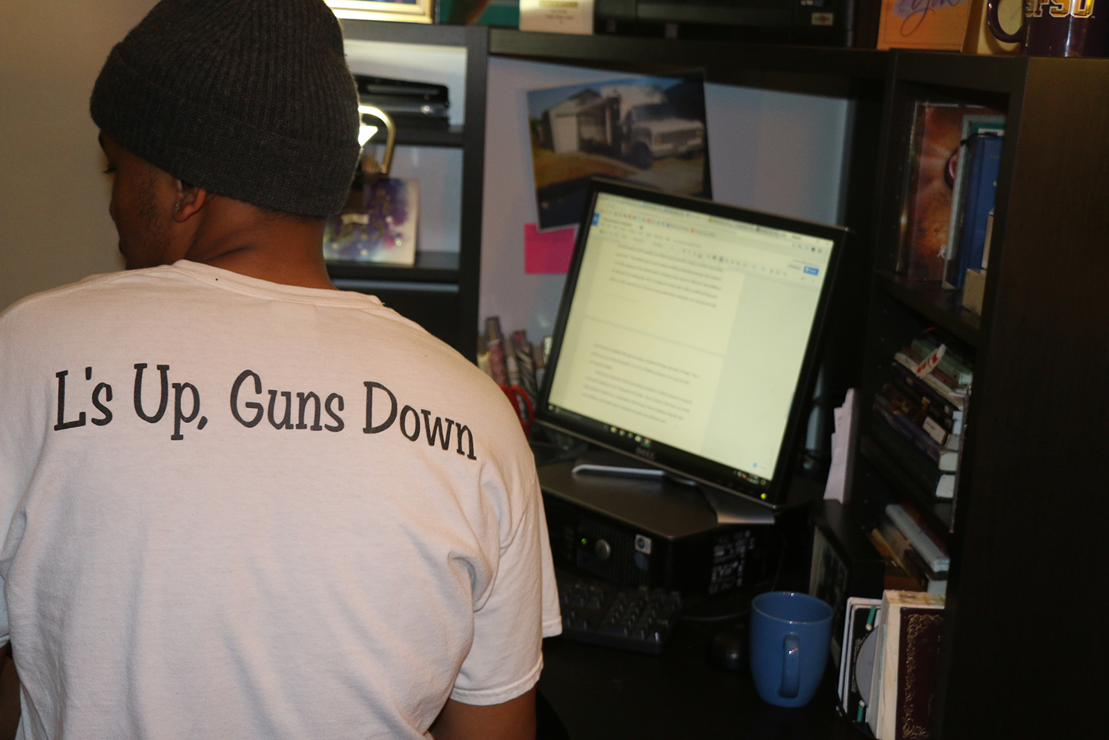 The new computer sits on a desk at the corner of the living room. Diamond has been sitting in front of it, working on an assignment for his English class. He has to write a 2,250-word analysis of a documentary using Google Docs, while simultaneously looking up articles online to find evidence to support his essay.