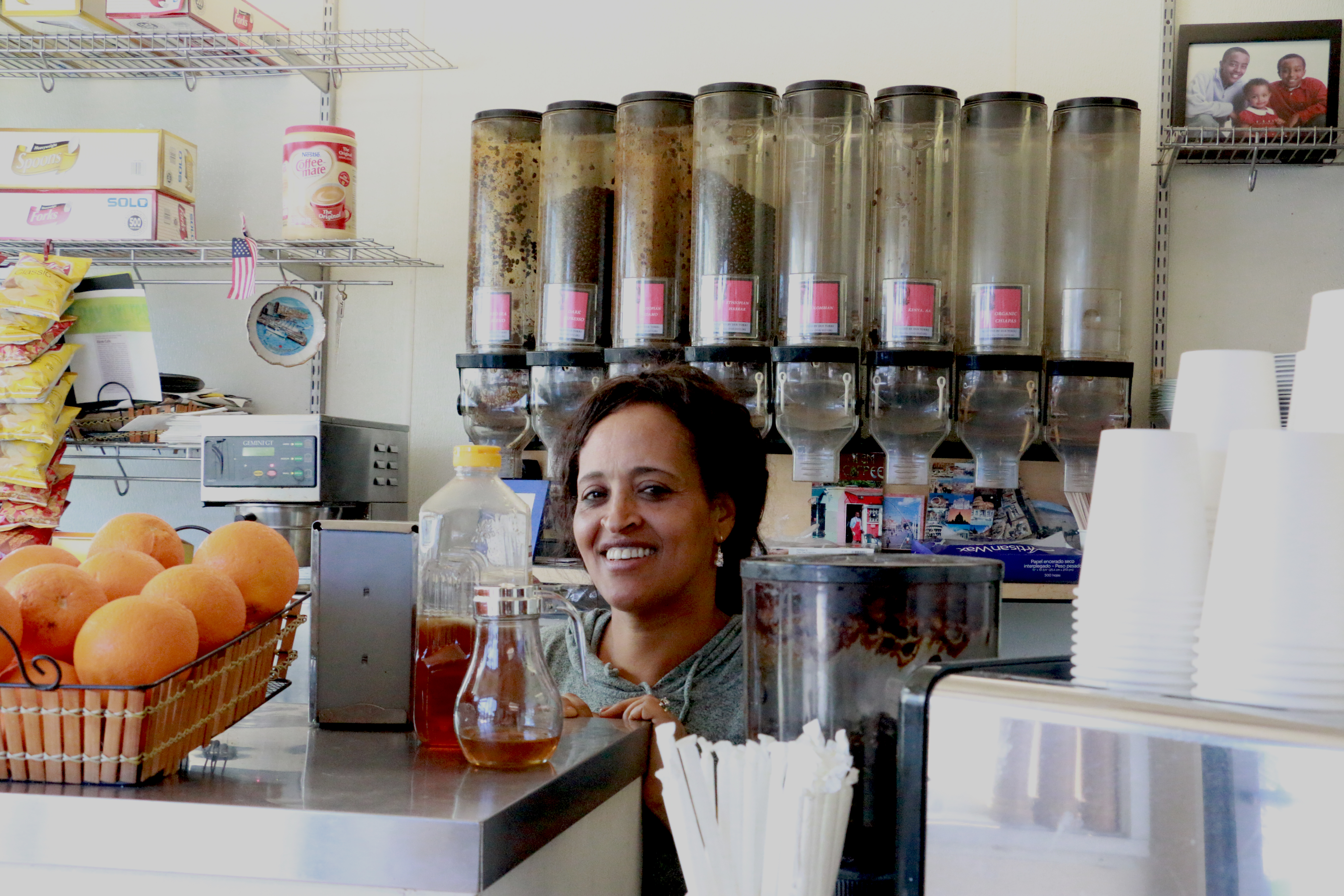 In the corner of Vicente Way and Claremont in Oakland lies what is a hidden treasure to many, but to others, a jewel in plain sight: Alem’s Coffee, which serves Eritrean food and is a gathering spot for the East African community. As you enter the strategically-placed corner coffee shop, the scent of coffee hits you in the face, then the scent of different spices punches you in the stomach. The sun shines brightly into the seating area through the giant windows and reflects on the display tubes that line the walls. The tubes look like candy dispensers with brown coffee beans inside. Behind the counter, family pictures of smiling children are hung with pride.