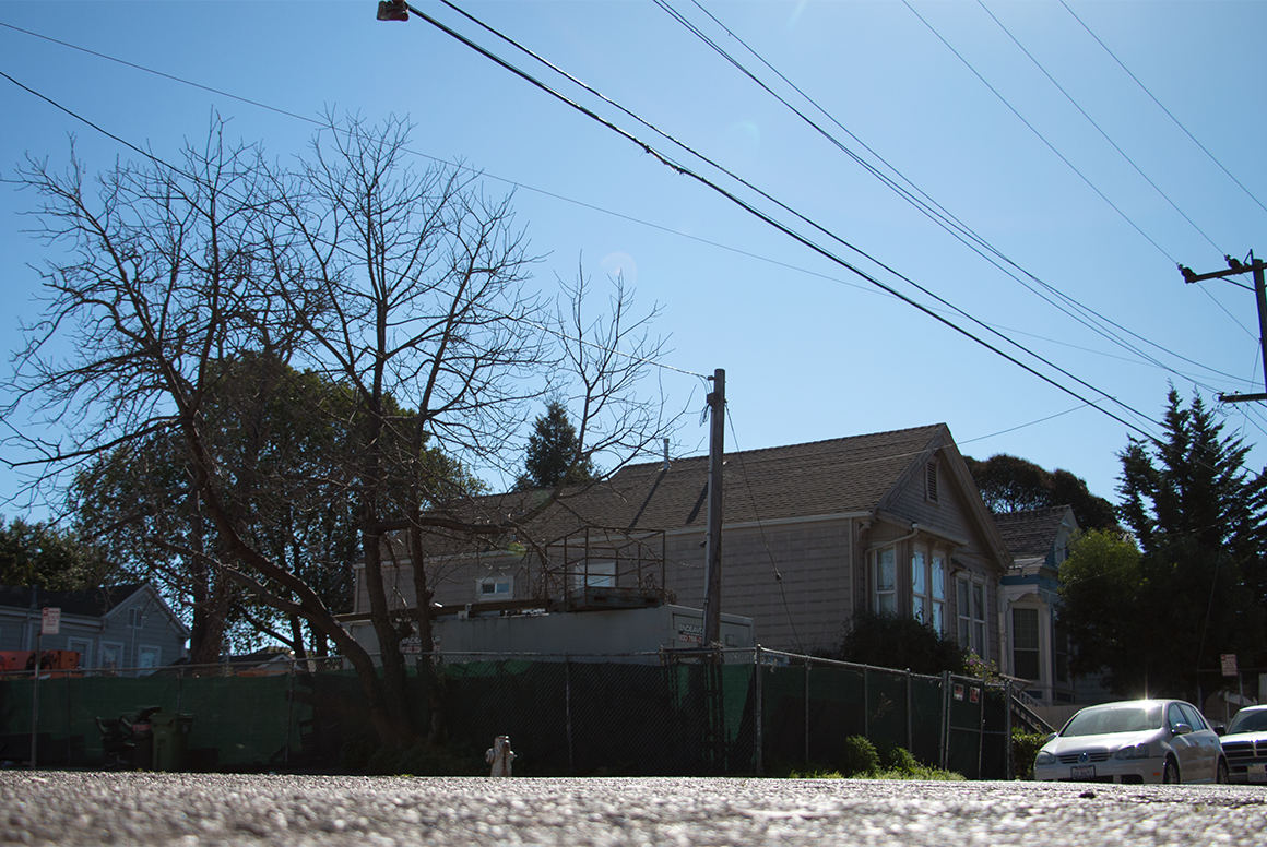 “Exactly. Exactly. You know,” says a man, who maybe sounds a little white and sophisticated, behind the wall hiding the mysterious construction project. The beat of a hammer can be heard from somewhere nearby. One wonders if the construction part of the process of gentrification happening throughout Oakland.
