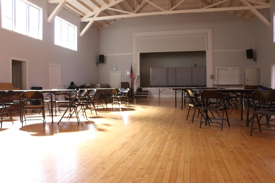 Today a billboard announces community lunches on every second and fourth Saturday. The dining room feels empty. A wooden piano and a US flag stand out. One can imagine the melodies that these walls have heard, the struggle that these walls have witnessed, the aromas of the lunches and breakfast served here. On this day, though, a small construction site in a nearby room brings noise and the smell of new furniture.