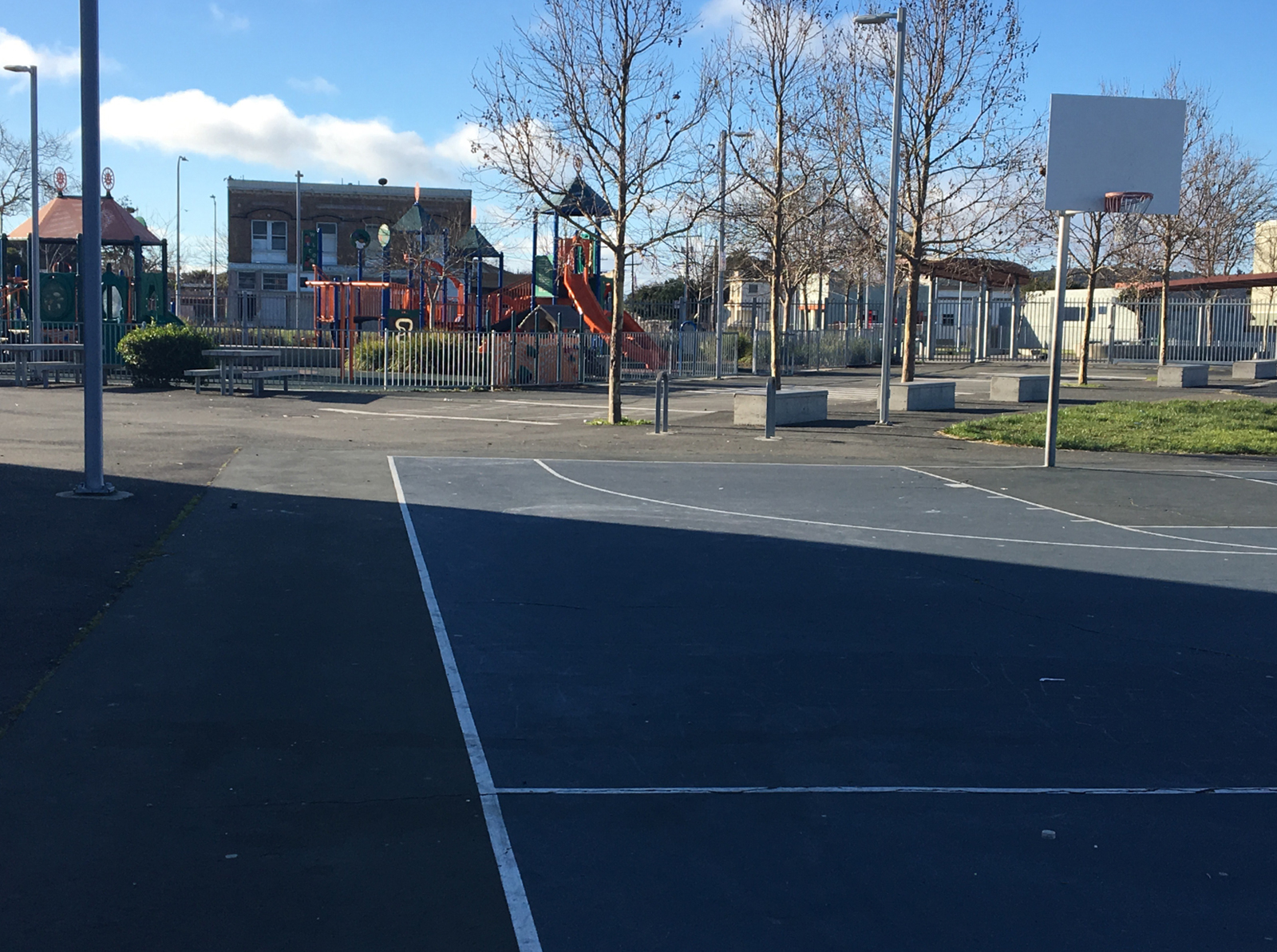 The Nevin Community Center is in Richmond’s Iron Triangle neighborhood, a few yards from Kaiser Hospital. The center’s playground is fenced off from a large patch of grass that stretches from the center to the sidewalk on the 800 block of Macdonald Avenue. Across the grass, a couple of older men are hanging out, sipping beers at a picnic table. A woman with a stroller walks by and asks them for a cigarette.