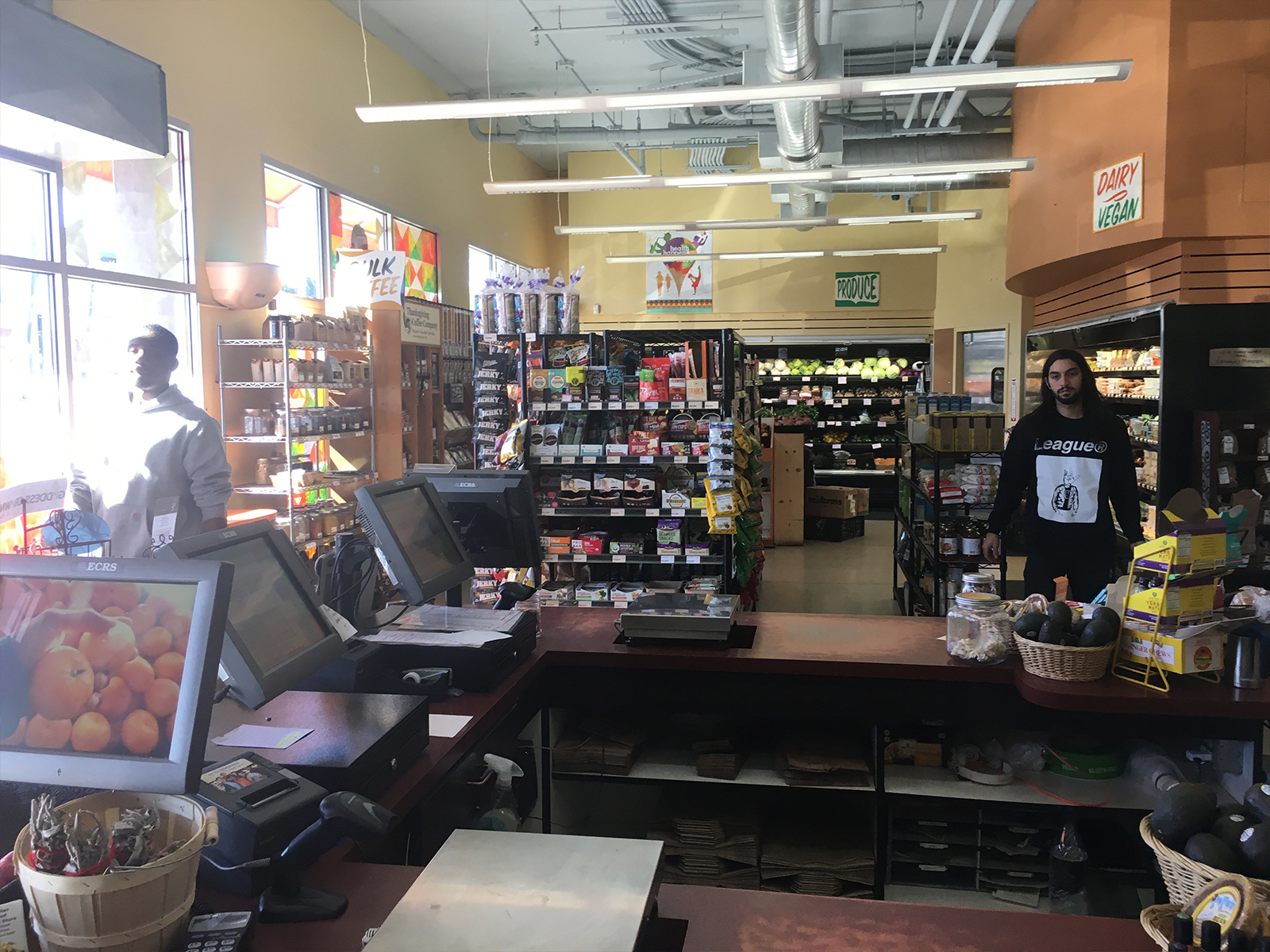 With very few places to sit, I sit on the counter facing a window showing the street. Customer after customer enters the food cooperative for either healthy groceries or one of Zella’s comfort food menu items. The first-time visitors wander the stores with the same amazement I experienced. The veteran shoppers move quickly to their desired items. Grocery store attendants refill stands of chips and restock juices in the refrigerators. Shopping carts clank when being pushed together.