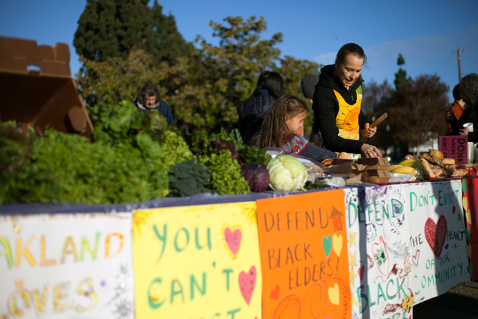 - Activists shared fresh vegetables at a rally in support of Frances Moore, outside the Hayward Hall of Justice in February. Photo by Caron Creighton.