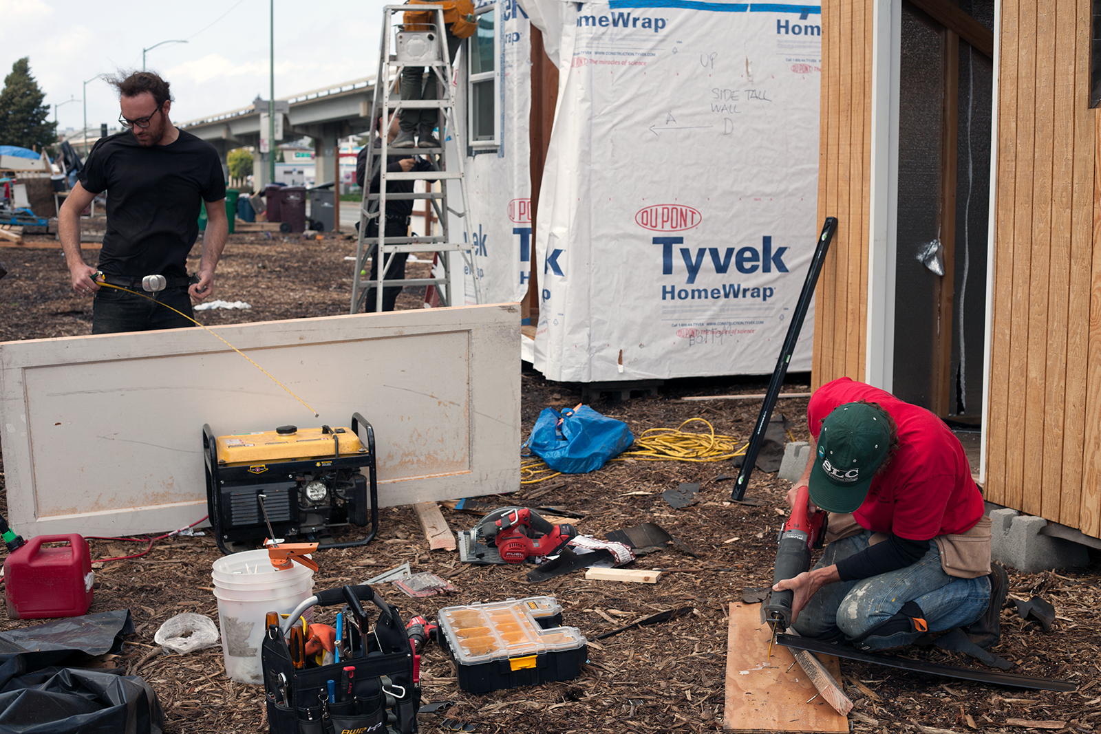 The lot, which is located at the corner of East 12th Street and 23rd Avenue, is home to about 80 people. Most live in tents and makeshift shacks while they wait for more tiny houses to be built. The construction is volunteer-led, with most of the work taking place on weekends. Two other houses are currently under construction. Members of The Village leadership have said that they have enough funds to build four more houses, and are planning to do more fundraising.