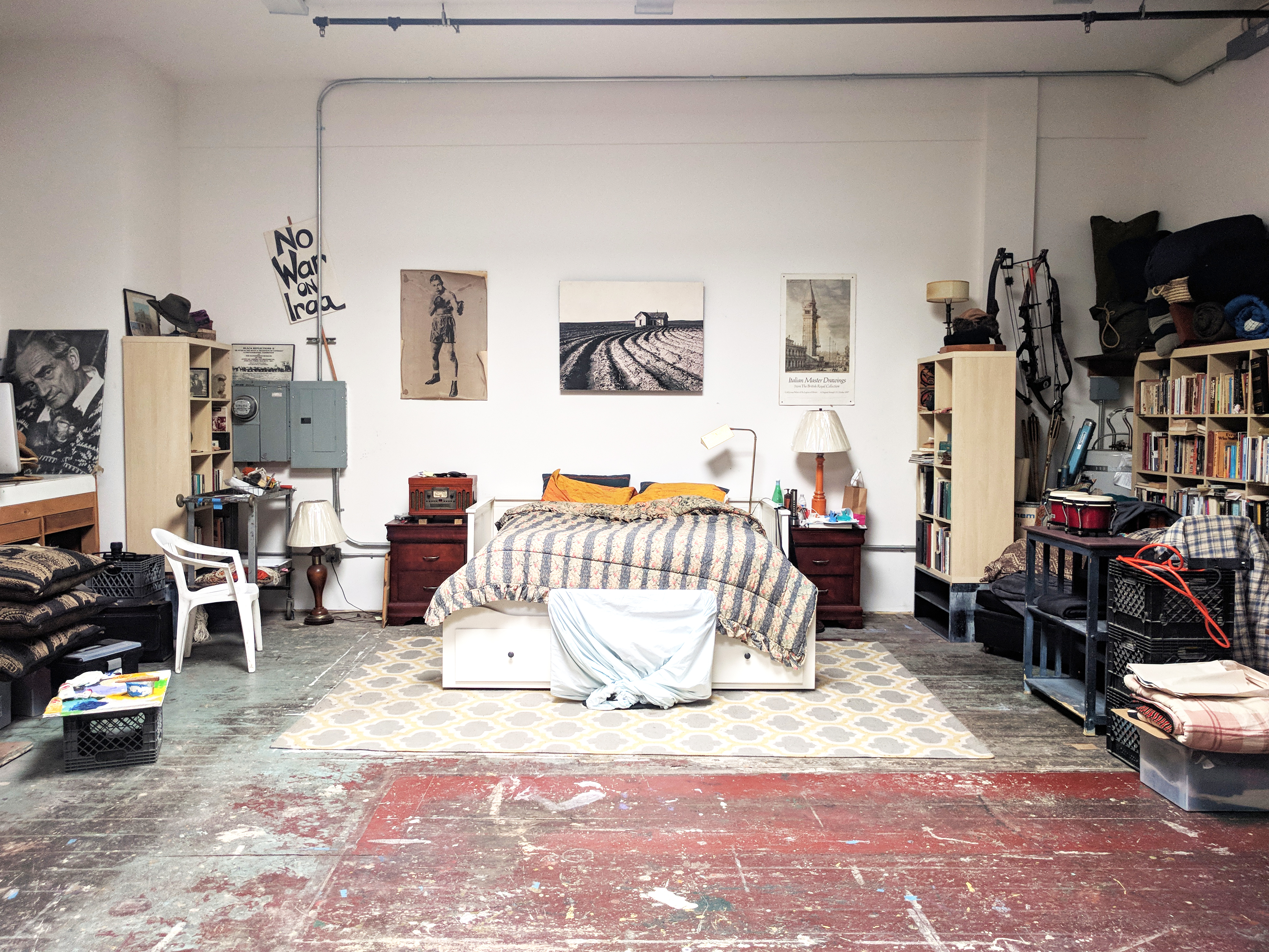 But artists live in much of that square footage. They cook dinner there. They make art there. They sleep, write, paint, and run small businesses there. Some have been living at the Cannery since at least 1975, thanks in part to Monroe’s father. The elder Monroe—an abstract expressionist painter active in San Francisco’s beat movement, a former professor of African American Studies and former registrar at the Oakland Museum of California—is now in his 80s. When he first arrived at the Cannery after being evicted from a San Francisco warehouse, he said there were still Del Monte cans all over the first floor. He’d previously seen that live/work use was possible during his time living and studying in New York City, so he set out to work with the Cannery’s then-owner and the city to establish what he says were Oakland’s first live/work permits.