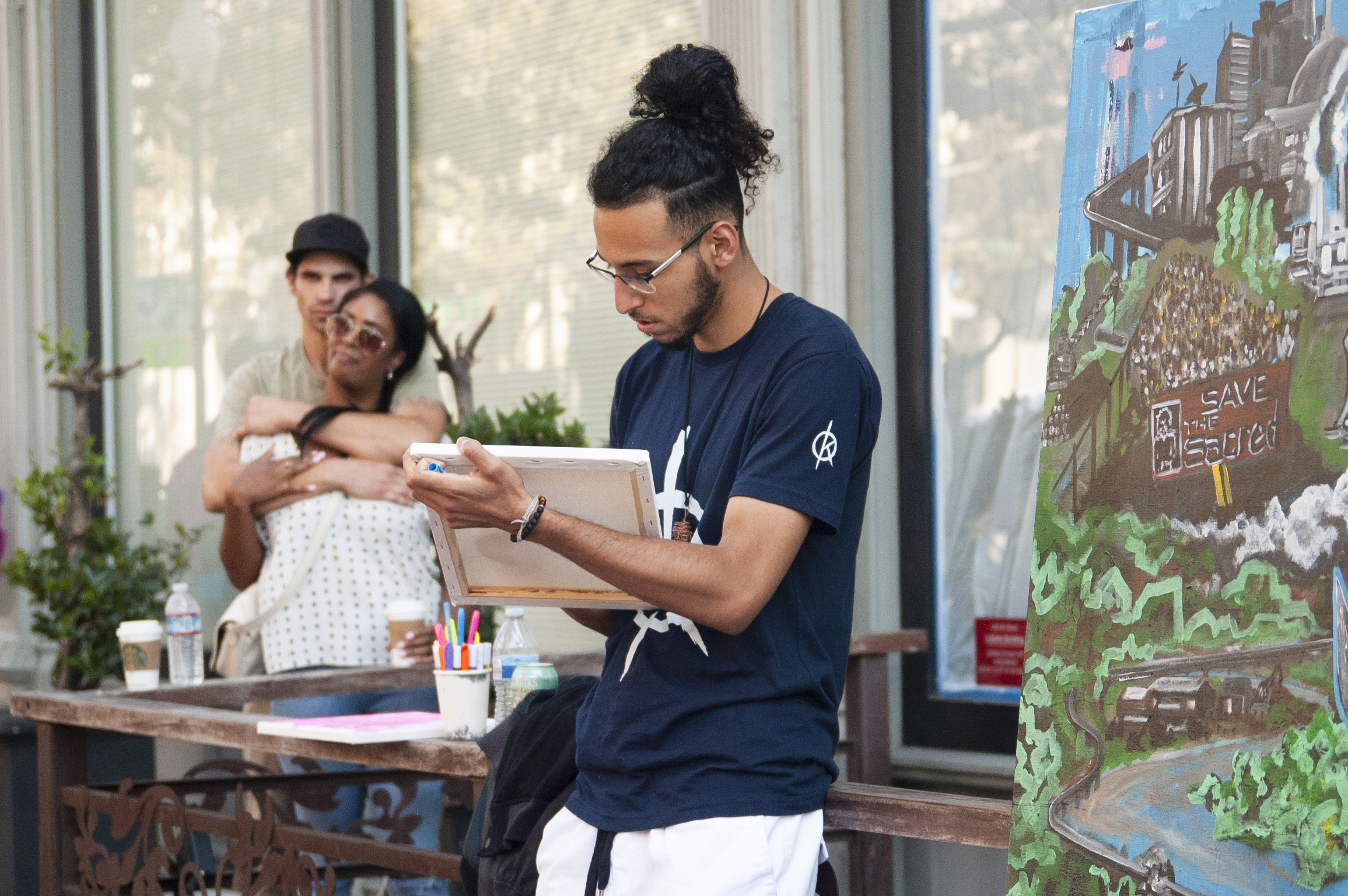 “Oakland is very vulnerable right now,” Monroe had said at his studio the day before the event. He wanted the festival to be a chance for artists—especially artists of color—to connect with each other, show their worth, and “carry the torch” passed along by generations of artists before them. “We’re on a path to preserve the arts,” he said.