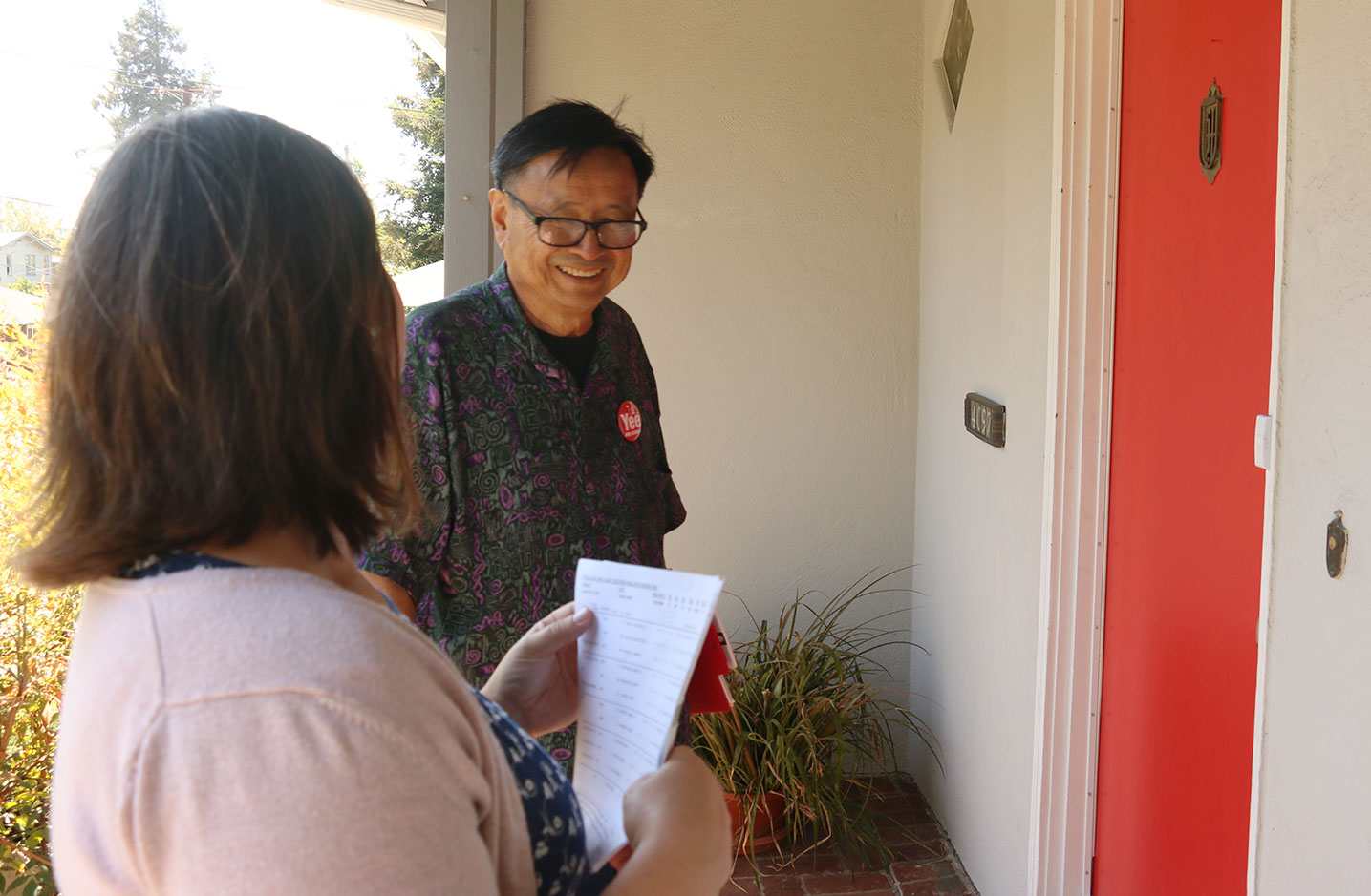 - Gary Yee knocking on doors with supporter Lacy Asbill in the Lincoln Highlands.