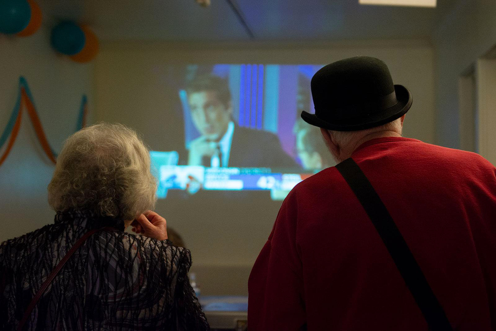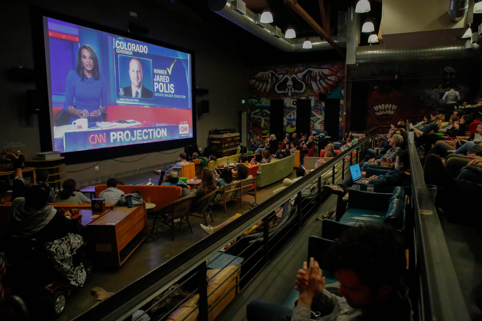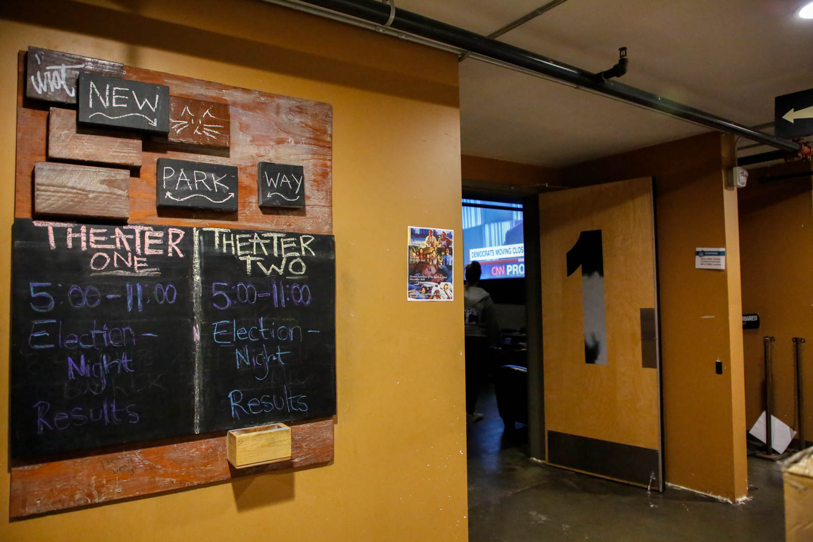 - The New Parkway Theater screened election results in two different rooms on Tuesday night. Photo by Jess Alvarenga.