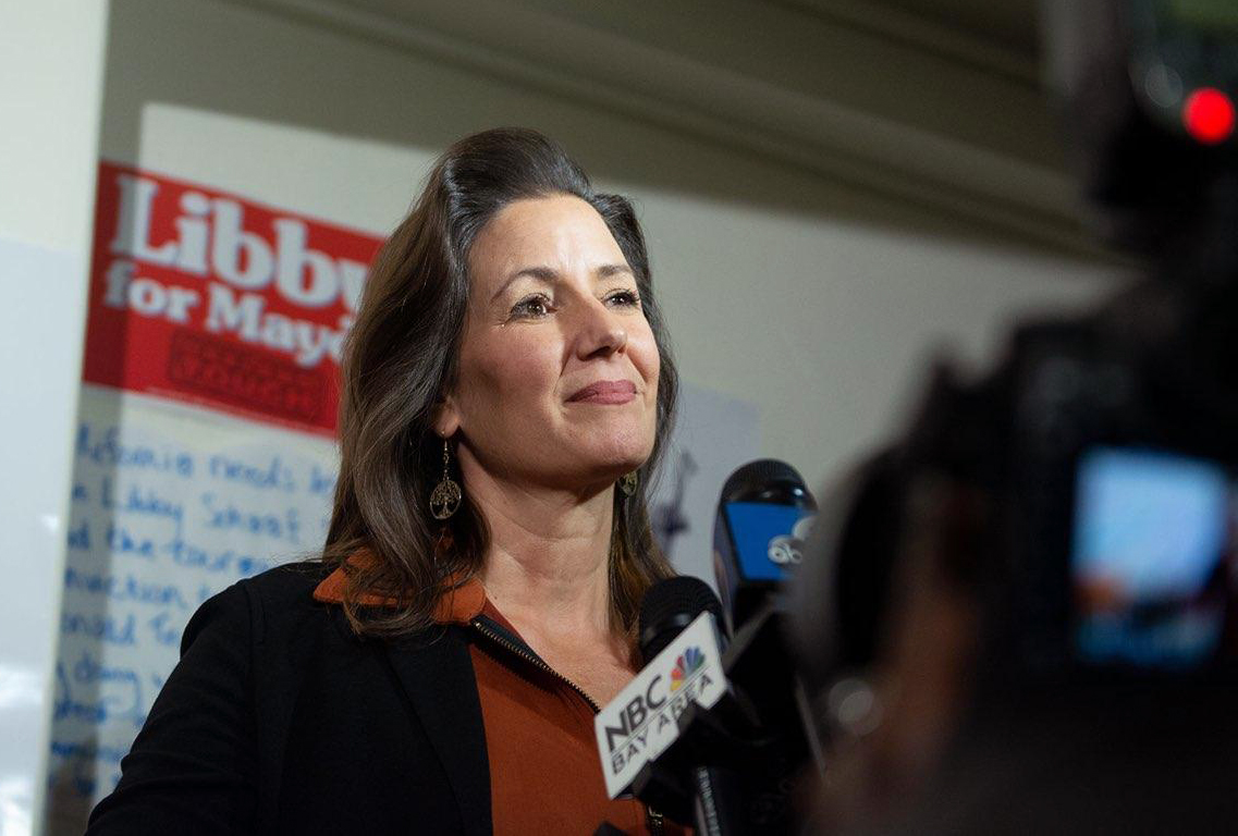 - Mayor Libby Schaaf talks to the press at about Election Day at her campaign headquarters on Tuesday night. Photo by Rosa Tuiran Grobet