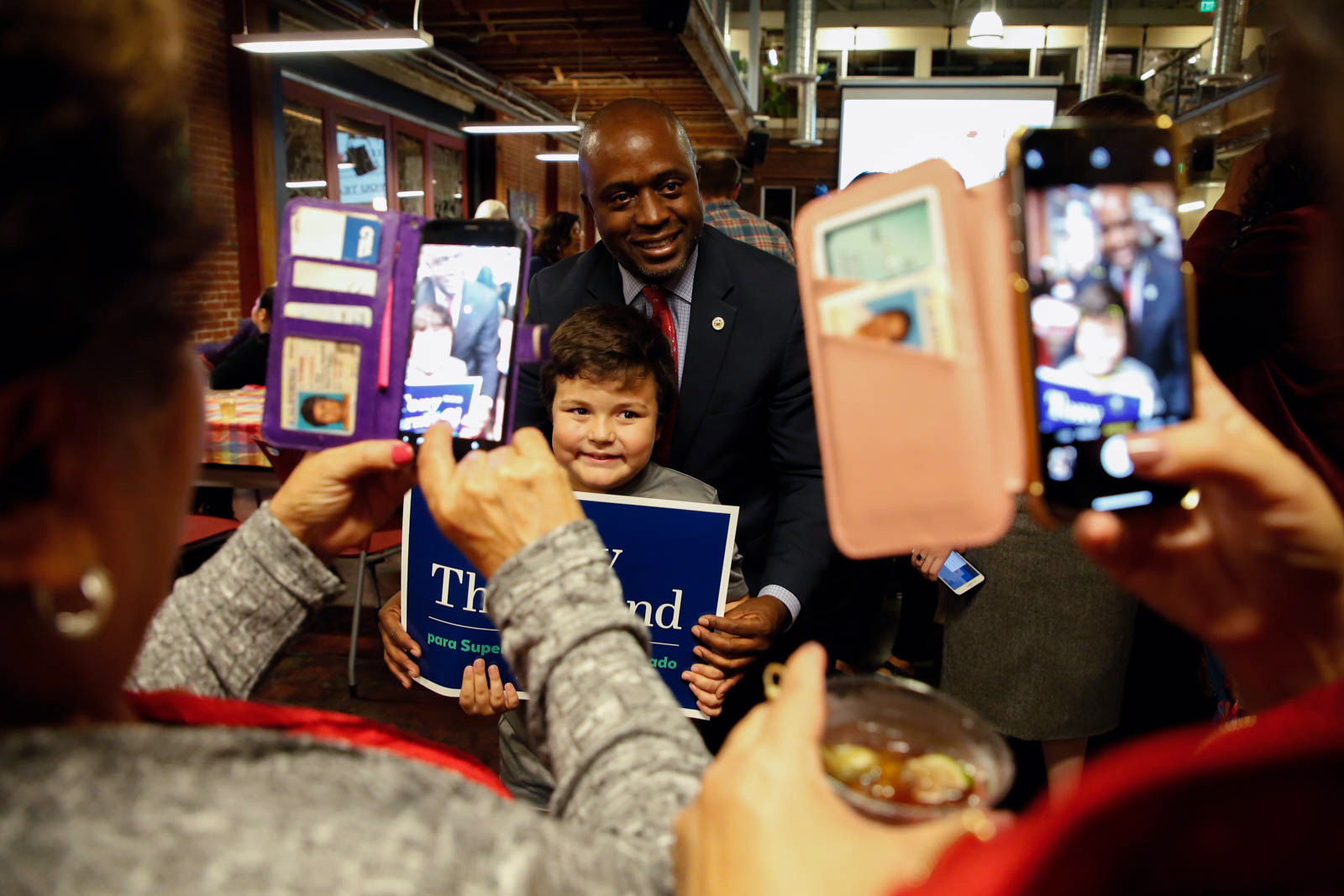 At Impact Hub, a coworking and events space in downtown Oakland, California schools superintendent candidate Tony Thurmond’s election watch party was full of cautious murmuring as early results showed him trailing by about 5 points. But when Thurmond arrived the assembled crowd chanted “Tony! Tony! Tony!”