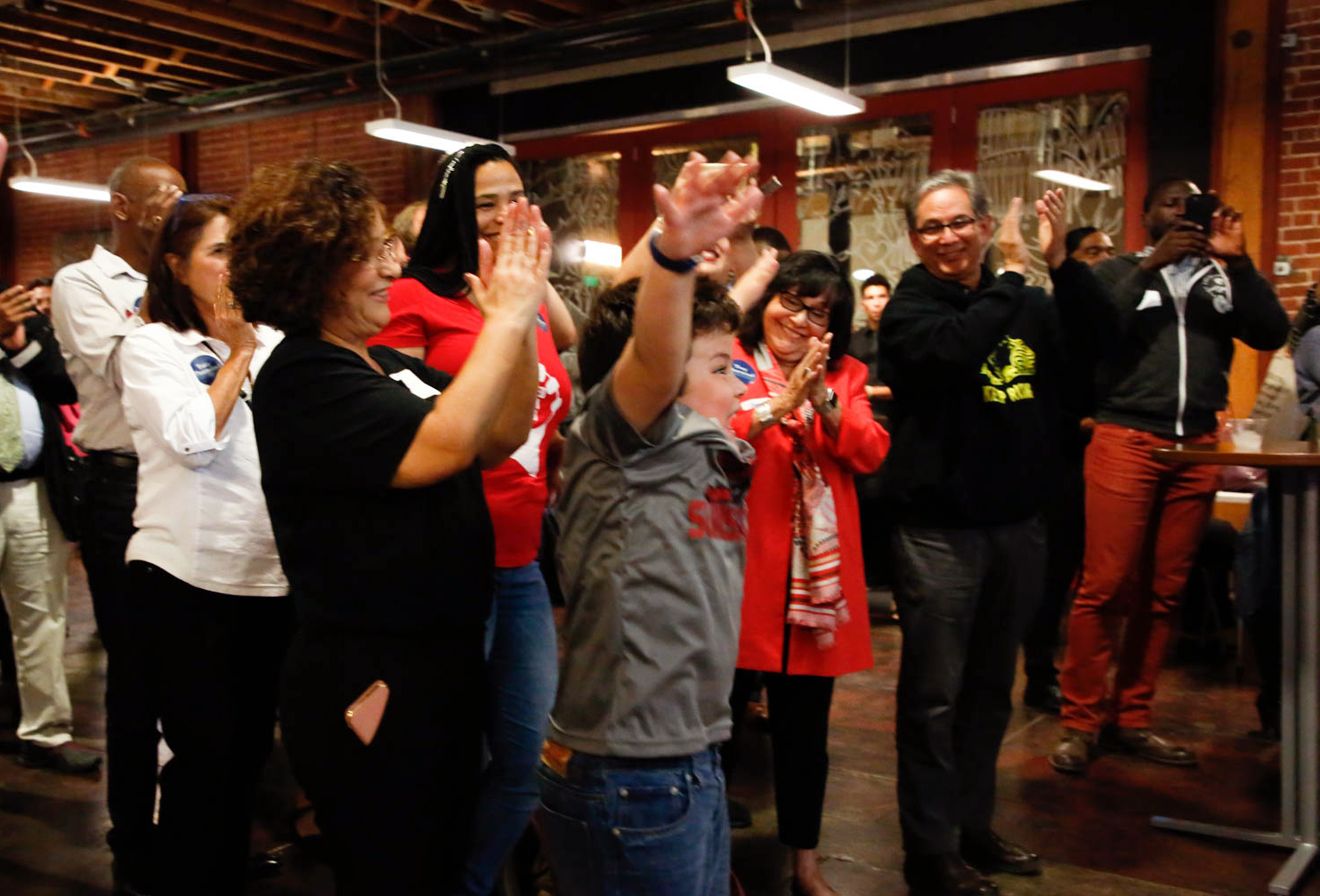 - Supporters for Tony Thurmond, candidate for California’s State Superintendent, at his watch party on Tuesday night. Photo by Jess Alvarenga
