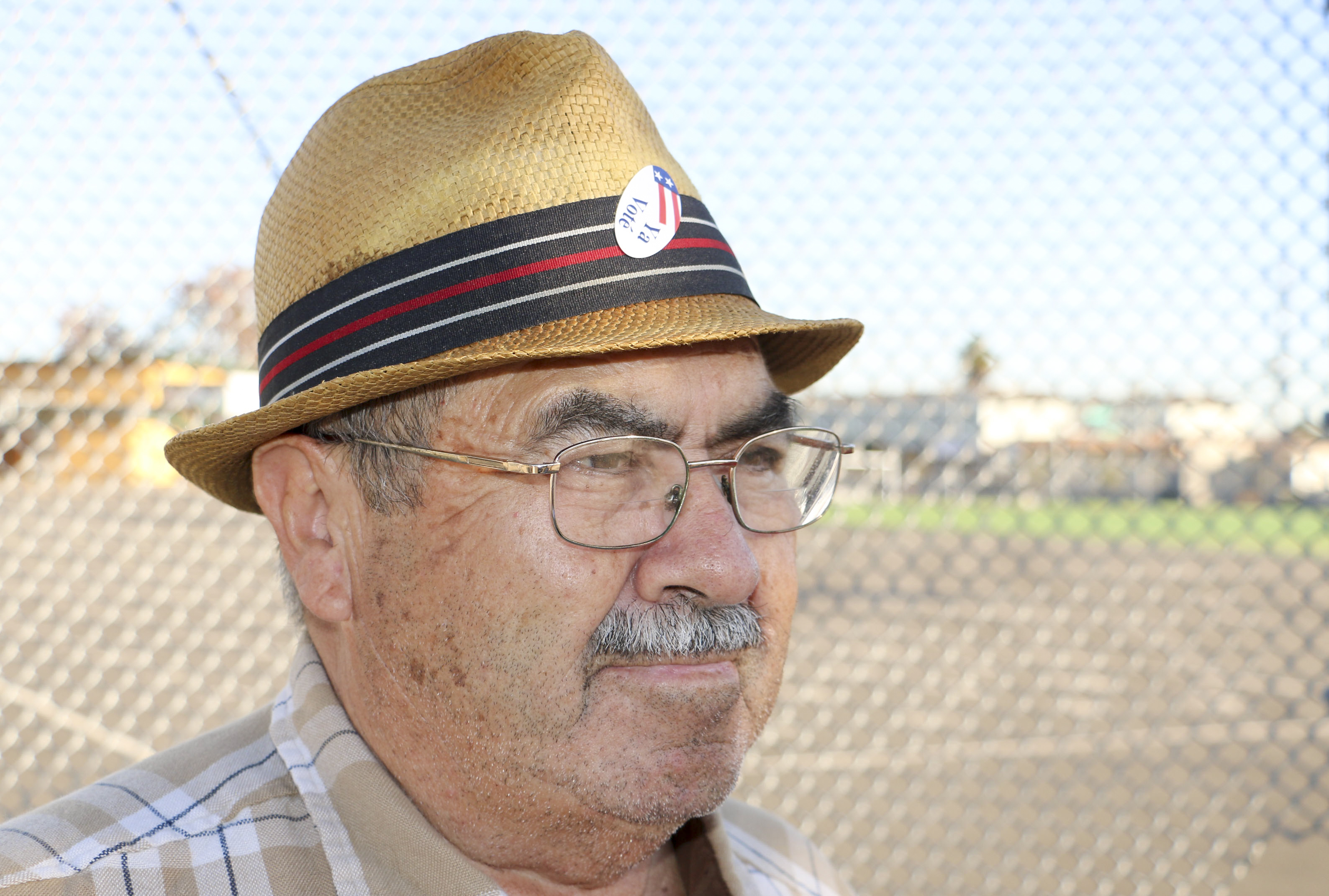 - Jose Orozco with voted sticker on his hat. Photo by Shuang Li.