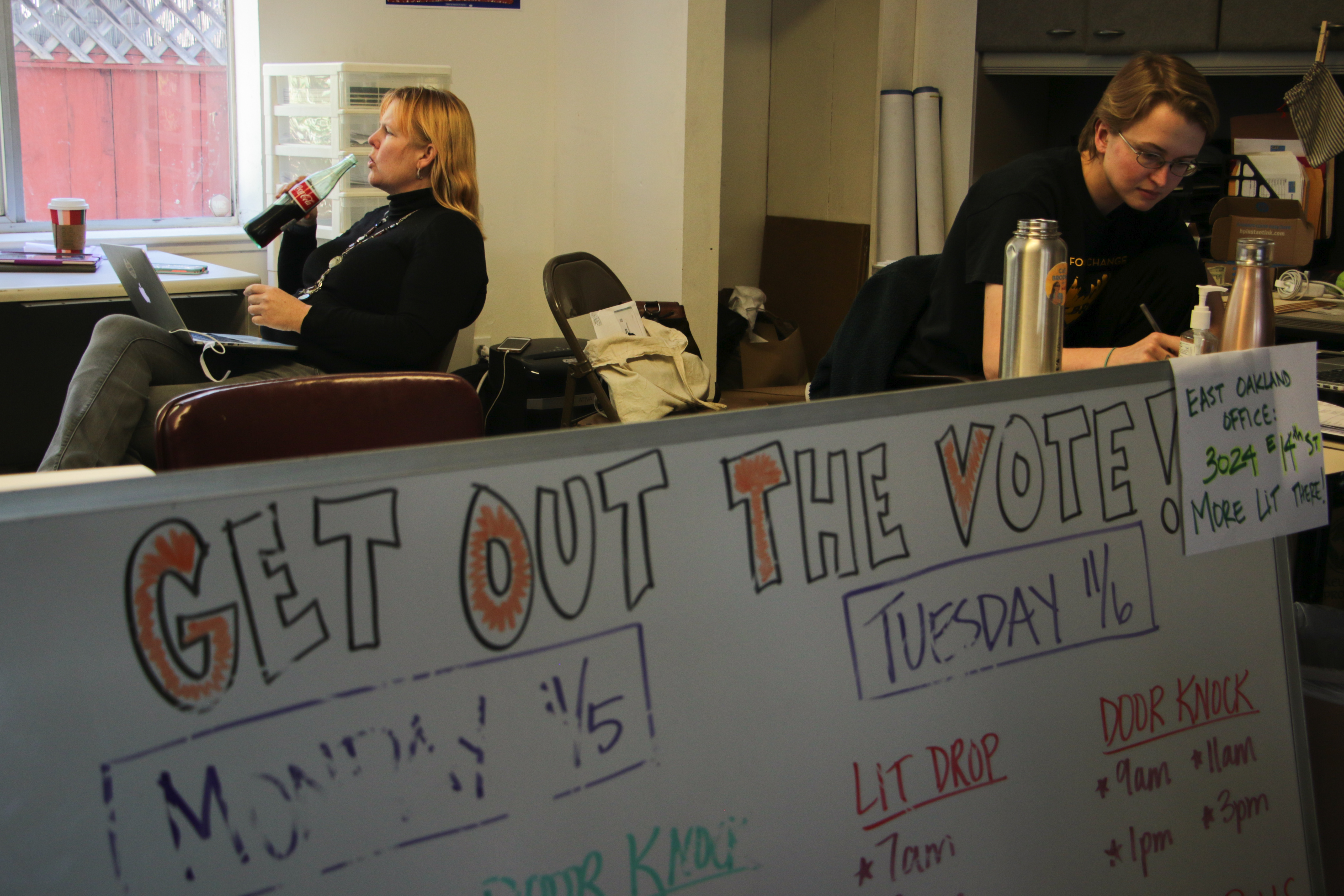 - Dozens of volunteers have been popping into Cat Brooks for Mayor headquarters all day hoping to secure the election for their candidate. Photo by Katey Rusch.