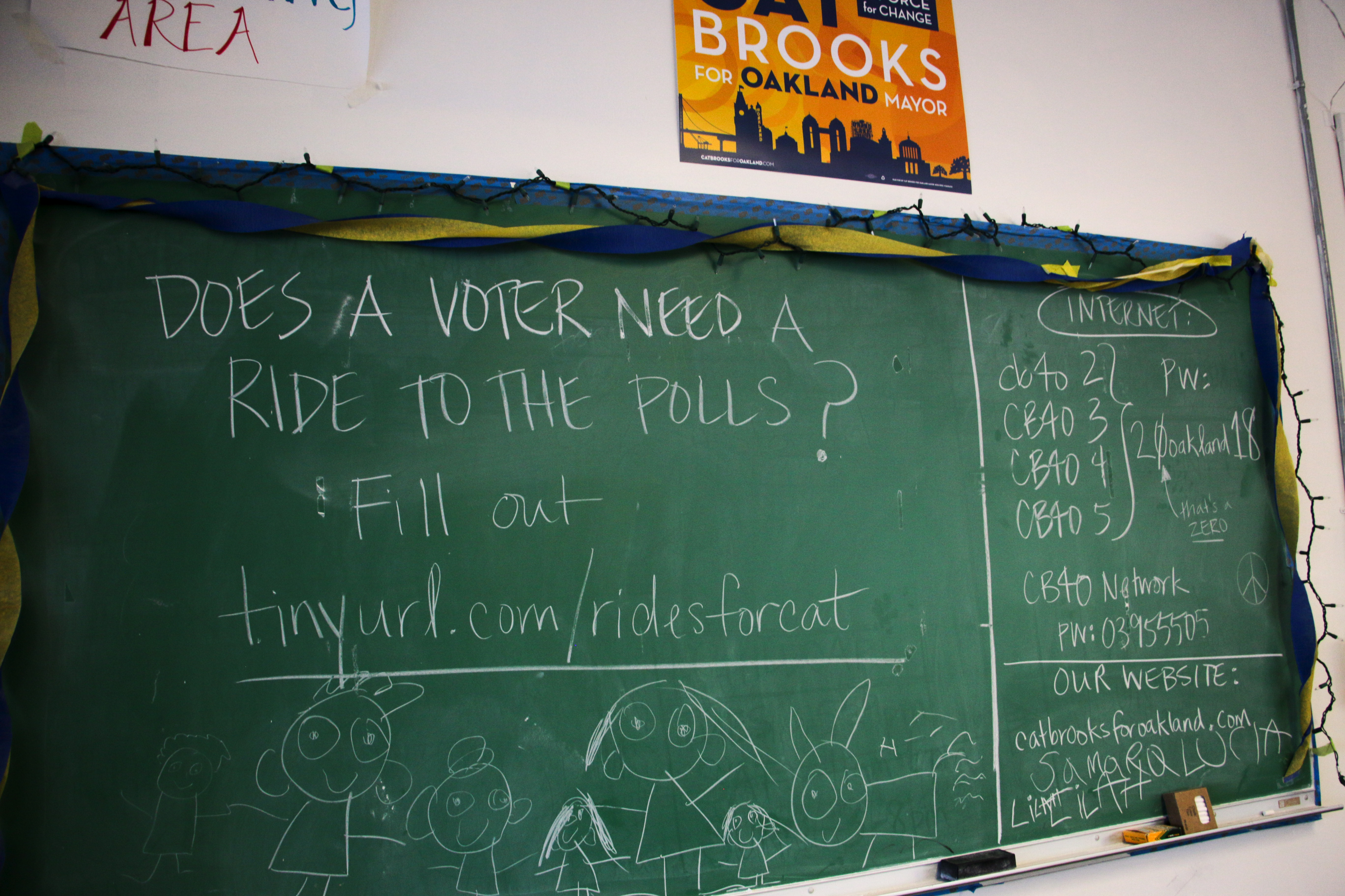 - Cat Brooks’ headquarters offered rides to the polls to anyone who needed it. Photo by Annie Berman.