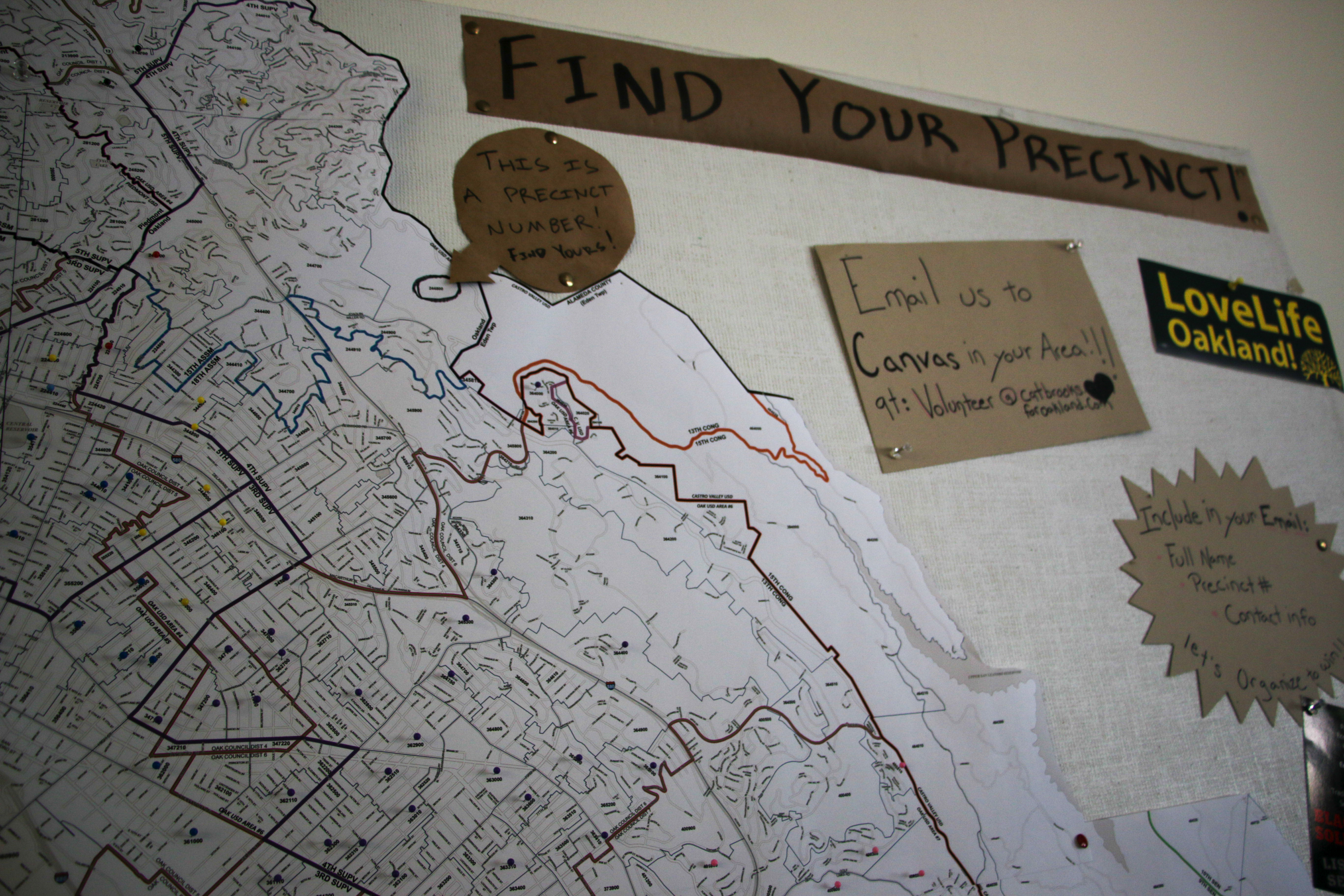 - A map shows Oakland voting precincts. Photo by Annie Berman.