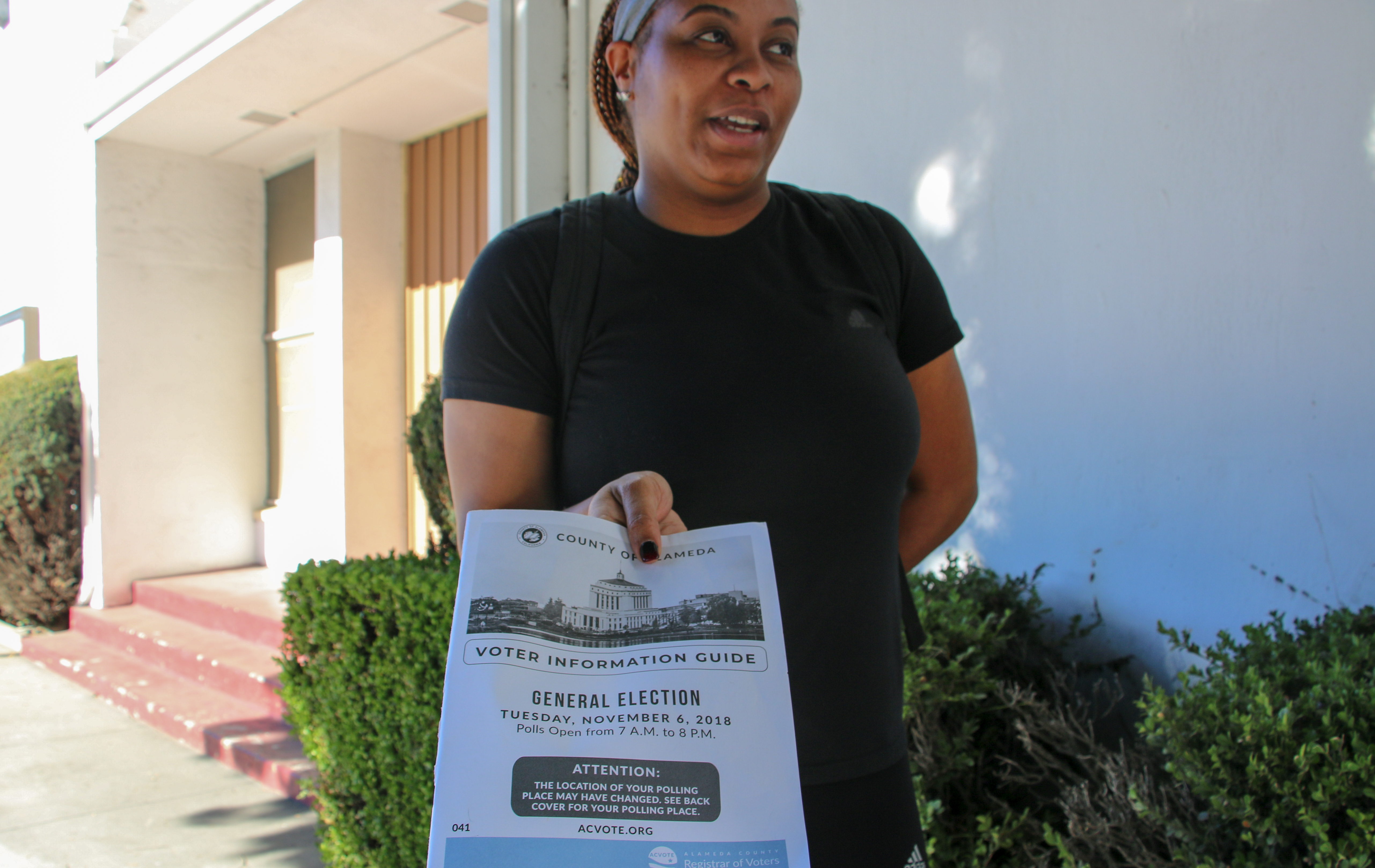 Michelle Blakeley, from Oakland, voted at Telegraph Baptist Center just before 1 p.m. She said she voted for Schaaf for mayor. “I think she’s had a tough job and has been doing pretty well. All the other people—I didn’t really know any of them, and I think they’re unproven in a lot of ways,” Blakely said.