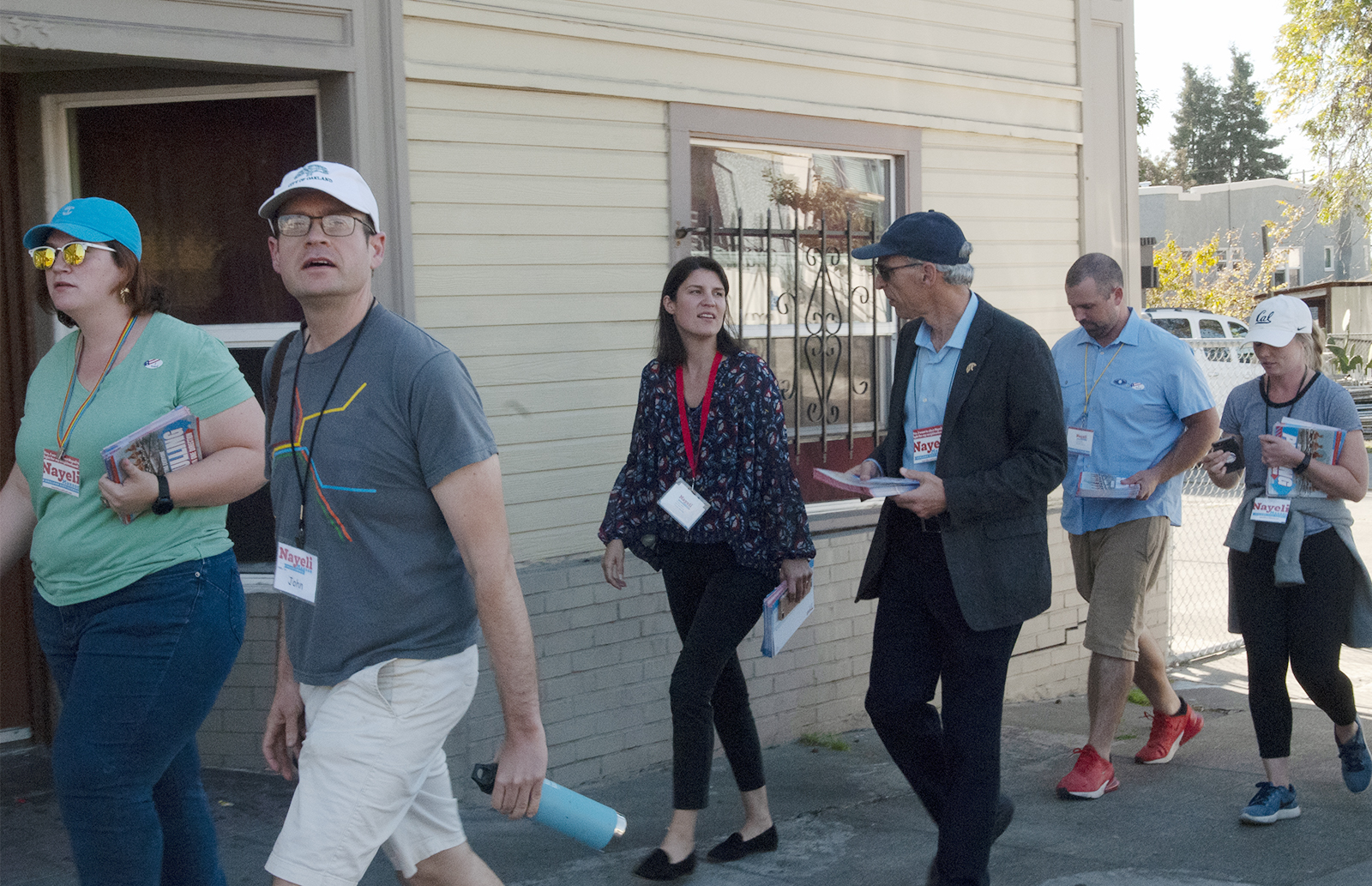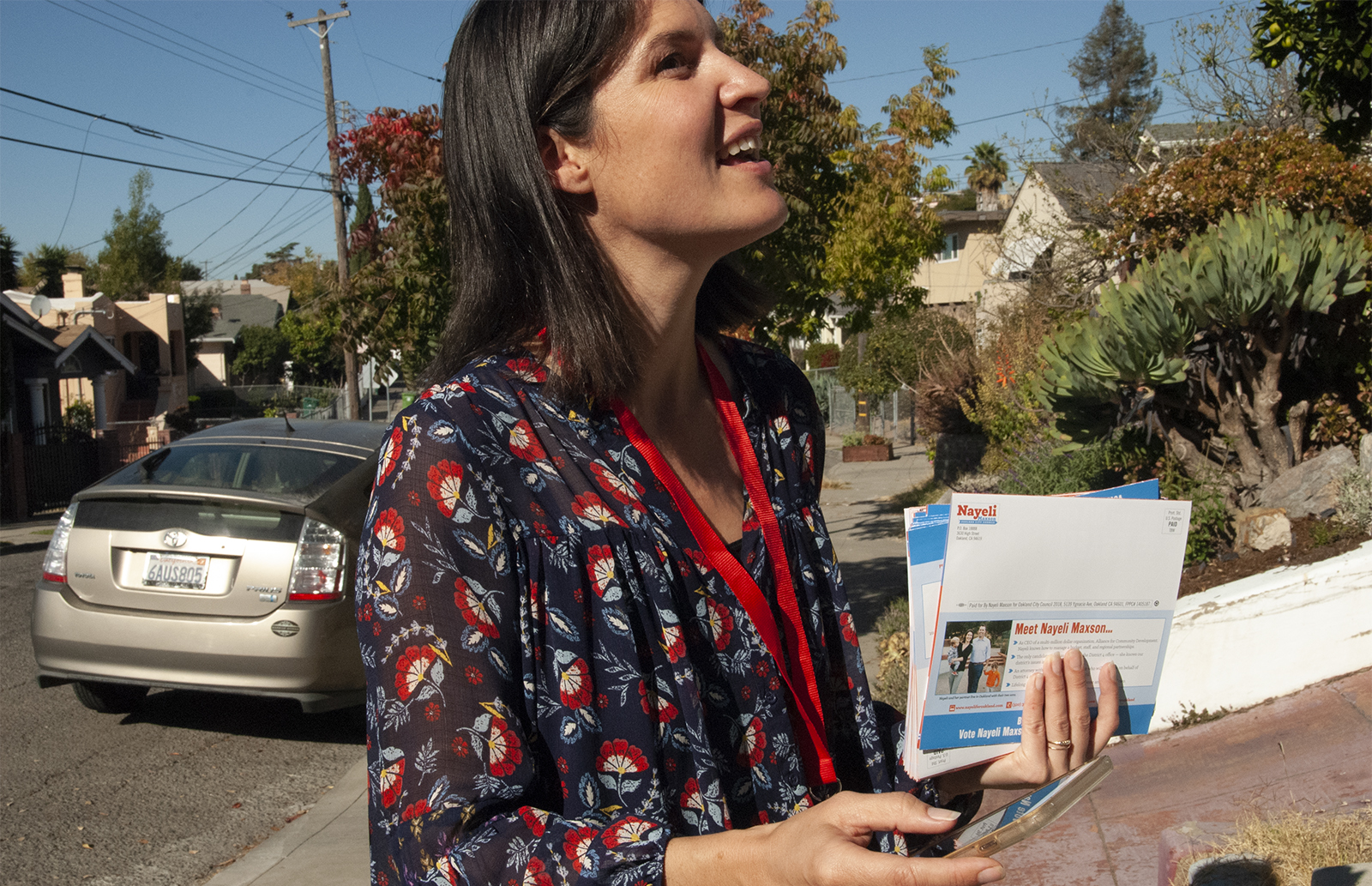 While walking away from a door on which she’d just left a flyer, Maxson said that in the parts of the district above Highway 13, her campaign has targeted only “likely” voters. Below I-580, they’ve targeted every voter. Maxson said she was inspired by the campaign of Alexandria Ocasio-Cortez, who won the Democratic primary in New York’s 14th congressional district in June, and did so by going beyond what Maxson said is the usual tactic of approaching only likely voters. Today, she was knocking on 492 doors in her East Oakland precinct. Earlier in the year, her group had knocked on every door in the district below I-580 to spread the word about her campaign and hand out voter registration cards. “We didn’t just go to likely voters; we went to all voters,” she said.