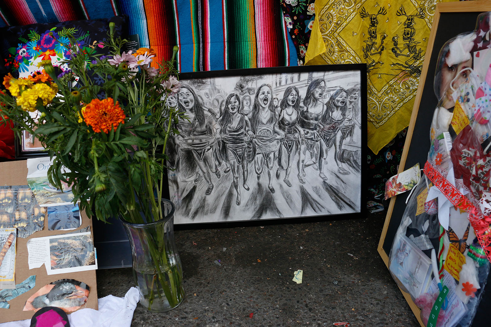 - Altamirano’s altar featured some of her own work on the oppression of women. One piece depicted a crowd protesting for reproductive rights in Peru, where many women were sterilized without their consent during Alberto Fujimori’s presidency in the 90’s.
